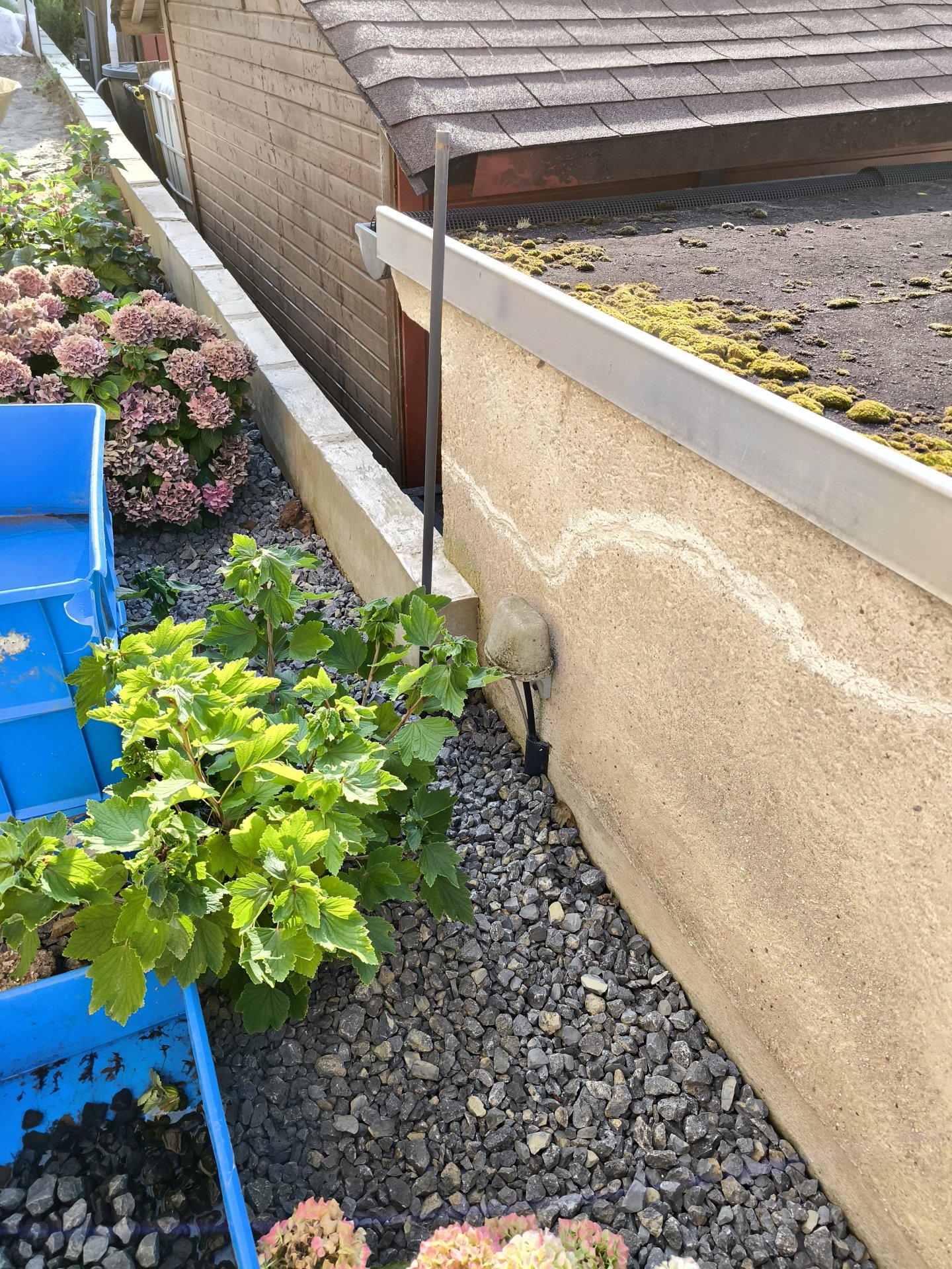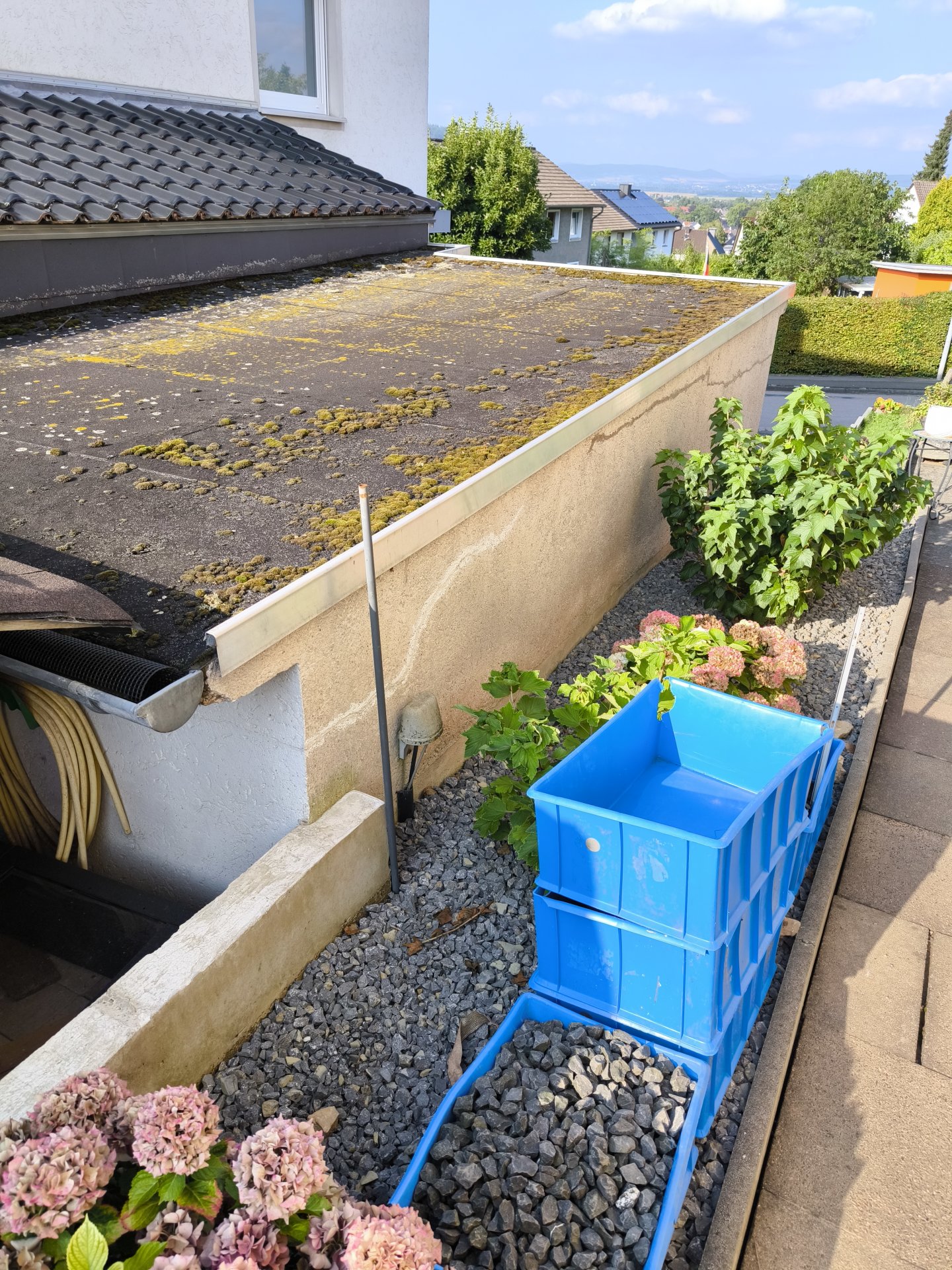 Dachkomplikation mit Nachbar, brauche euer Wissen: Mein Nachbar war bei mir und meinte, dass bei ihm die Wand nass wird. Auf den Bildern zu sehen sind meine Dachrinne und die Wand vom Nachbarn, am... -