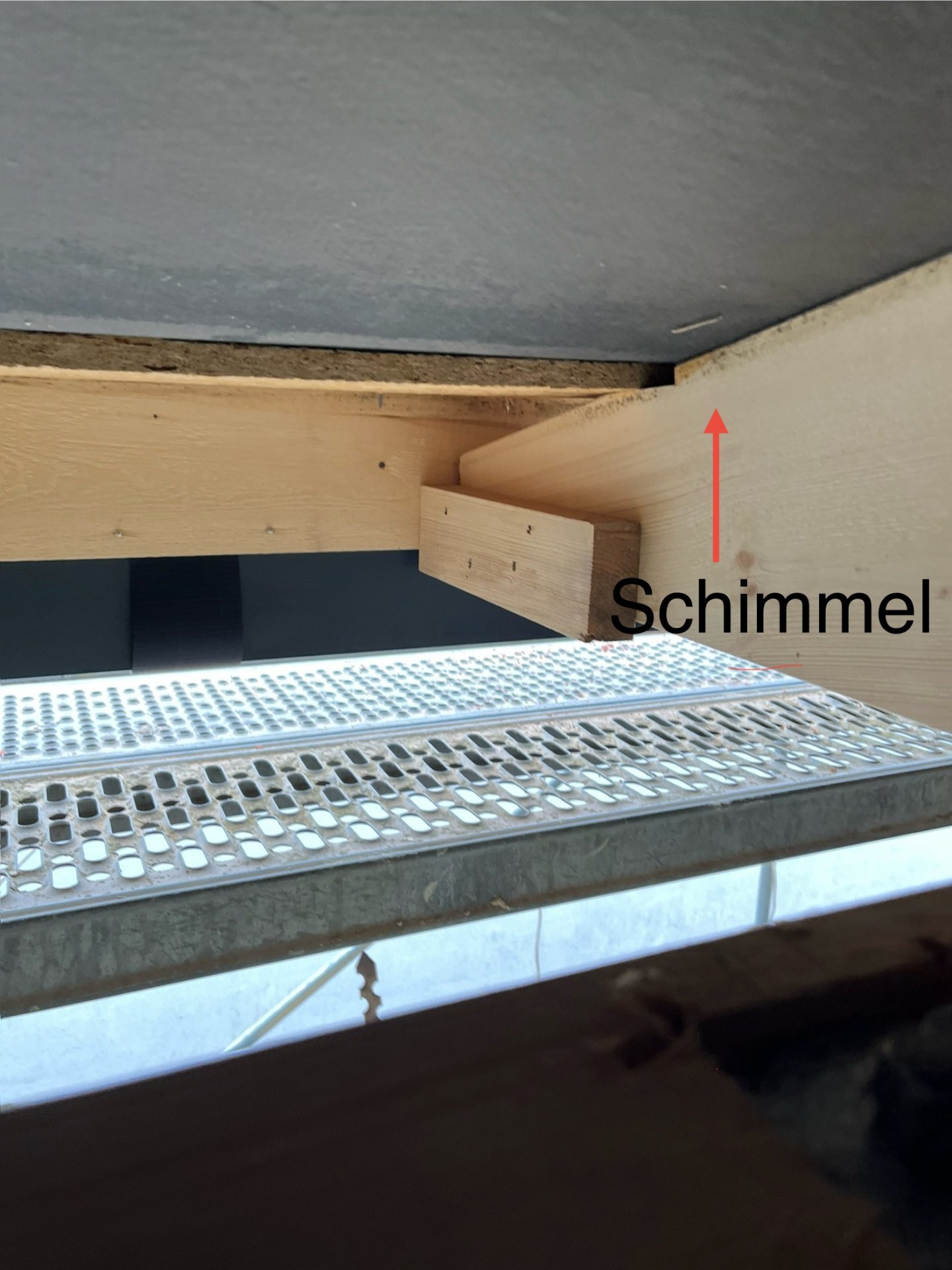Ich hätte doch noch eine Frage. Nachdem ich letzte Woche festgestellt hatte, dass es doch etwas nass an der Traufbohle war, habe ich nun etwas Schimmel an zwei Sparren entdeckt.