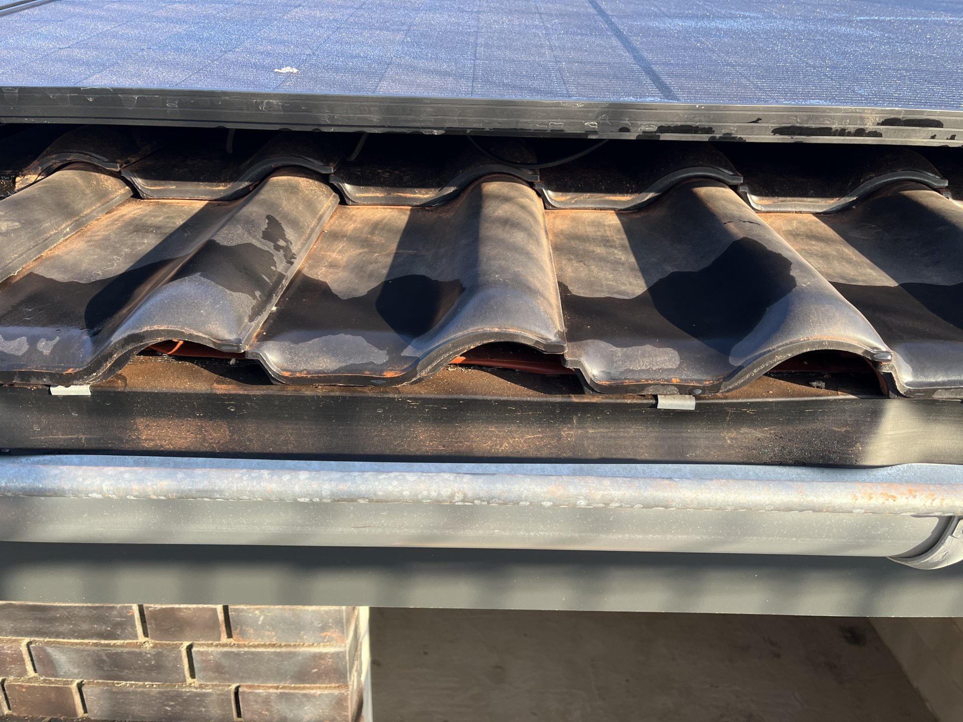 Du hast vom Gefühl her ca 10° Dachneigung, oder? Das ist die untersteh DN die die Fachregel vorsieht und dann auch mit Zusatzmaßnahmen. Das ausfräsen der Dachziegel ist da ein absolutes No-Go. Hier gehören entweder Modulstützen vom Hersteller montiert, oder Blechziegel.