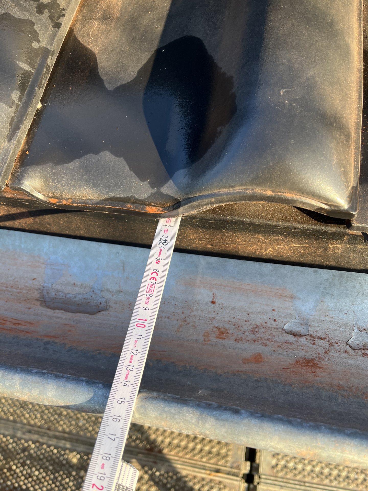 Ja, das sind 12 Grad. Reicht das wenn ich die Unterste Reihe mit blechziegel ersetze oder müssen das alle sein? Welches Risiko besteht, wenn wir das so lassen? Wir hatten darauf gedachtet, dass genug Abstand zwischen Haken und der untere Ziegel ist.