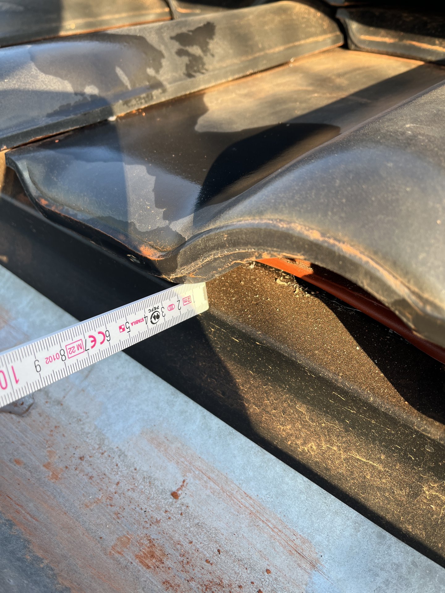 Kein Abstand zum unteren Ziegel, dann versucht mit "Silikon" das Ausgefräste abzudichten. Sorry, aber bei der Dachneigung ist diese Variante die Falsche.