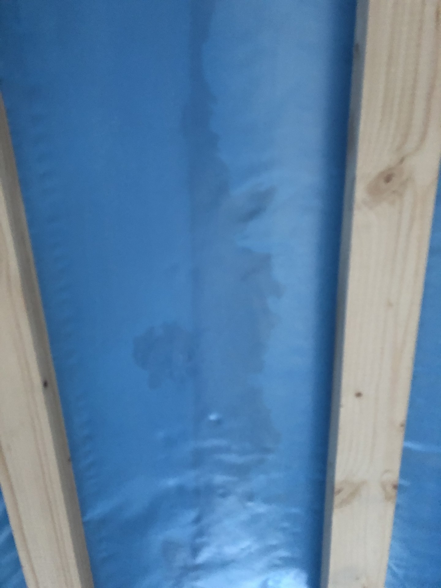 Gutachter meinte am Telefon, dass vll in dem Bereich die Folie undicht sei und dann an der Dämmung kondensiert.