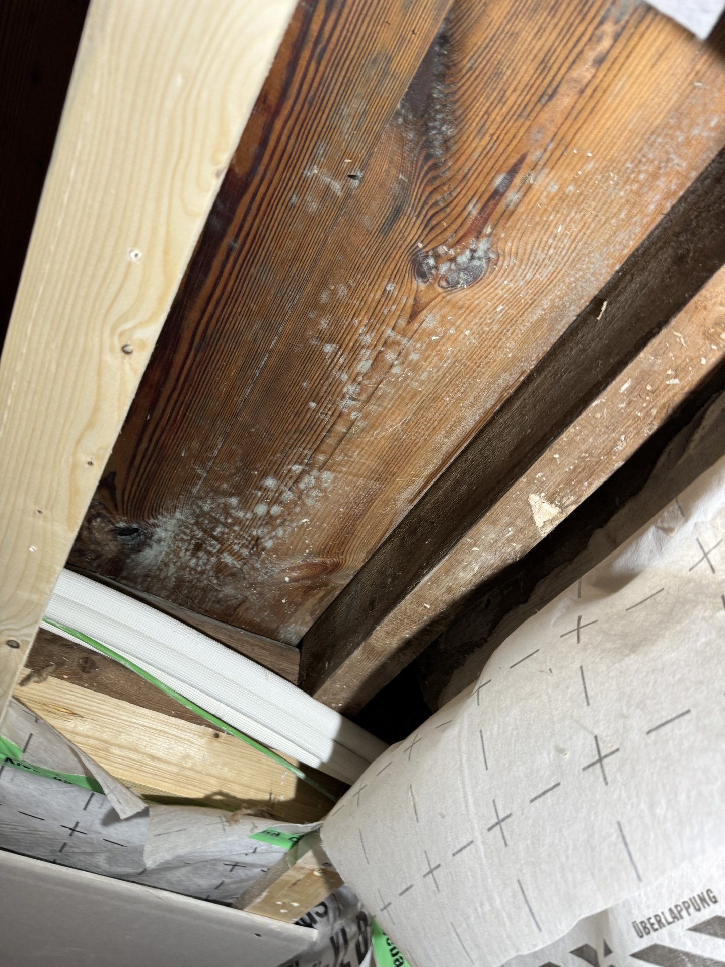 Nasse Wand, Trockene Dampfbremse, Feuchte Dämmung, Schimmel auf Dach/Holz