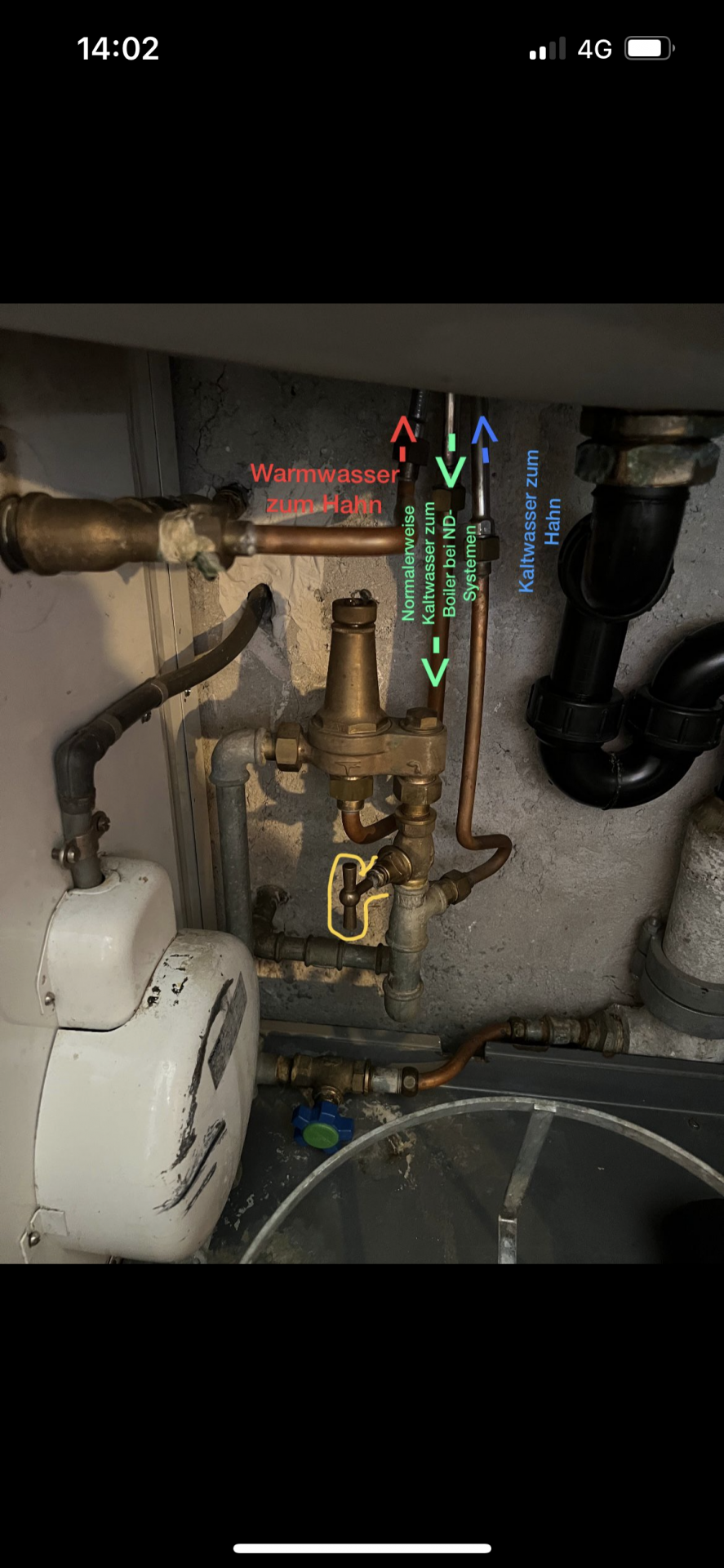 Diskutiere Neue Armatur, unbekannte „Sicherheitsgruppe“ im Sanitär Forum im Bereich Haustechnik; Hallo kennt jemand folgende Gruppe? (Grüner Pfeil) Angeschlossen ist anscheinend eine Niederdruckarmatur, der Warmwasserboiler wird aber mit...