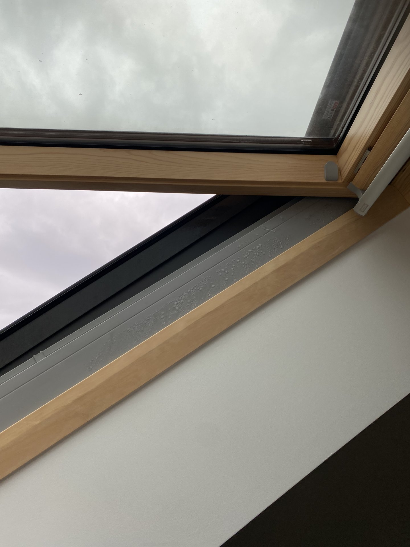 Der Techniker von Velux der schon hier war meinte, es gibt zwei Dichtungsebenen, Innere und Äußere Ebene, die Innere scheint nicht 100% dicht zu sein.