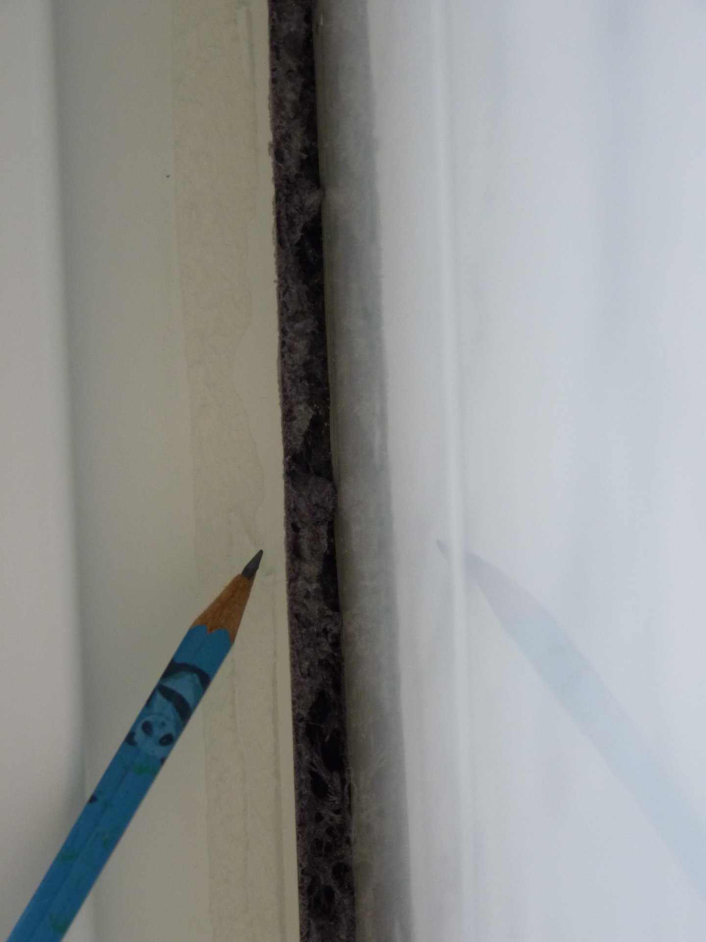 Ich habe jetzt mal im Bad (da sind nur Fliesen und keine Anputzleiste daher war nur eine Klebeleiste drauf) diese entfernt um mal einen Blick auf den PU-Schaum zu haben.