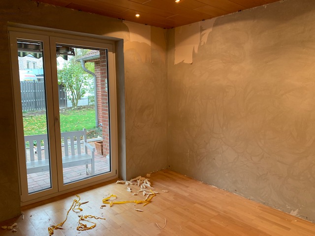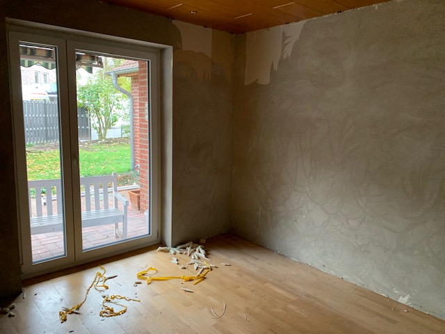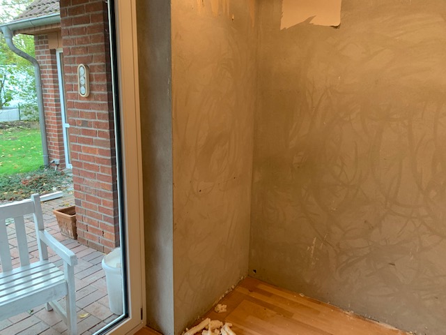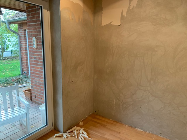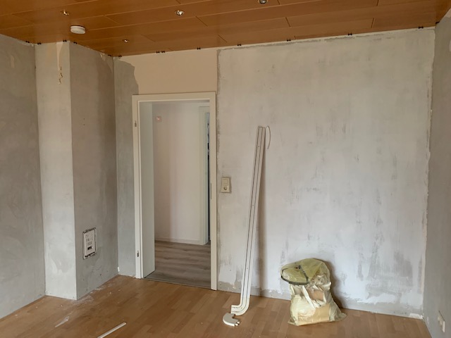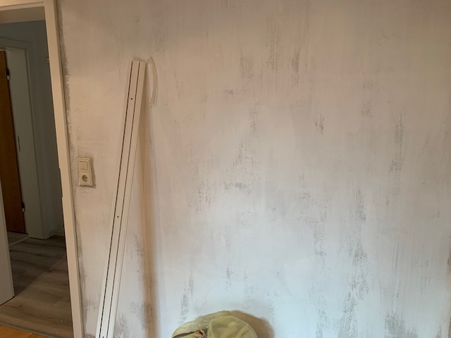 Die Oberflächen sehen auf jeden Fall im zukünftigen Schlafzimmer und Ankleidezimmer so aus. Da der Wohnbereich vergrößert werden soll durch Abriss von zwei Wänden würden wir in diesem Bereich eher auf Maler zurückgreifen. Aber es wäre halt schon schön sich das Geld für einen Profi in den beiden Räumen sparen zu können. Außer natürlich ihr würdet sagen, die Oberfläche ist nicht das wahre vom Ei und sollt besser vom Profi gemacht werden.