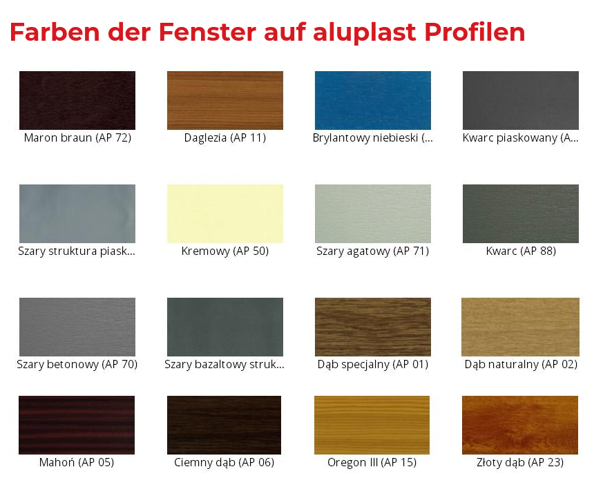 ich dachte nur, dass so etwas häufig vorkommt und es dafür ein geeignetes Vorgehen gibt. Die Hersteller haben ja in ihrem Programm extra unterschiedliche Bezeichnungen für Aluminium (RAL-Farben) und Kunststoff (Fantasiebezeichnungen)