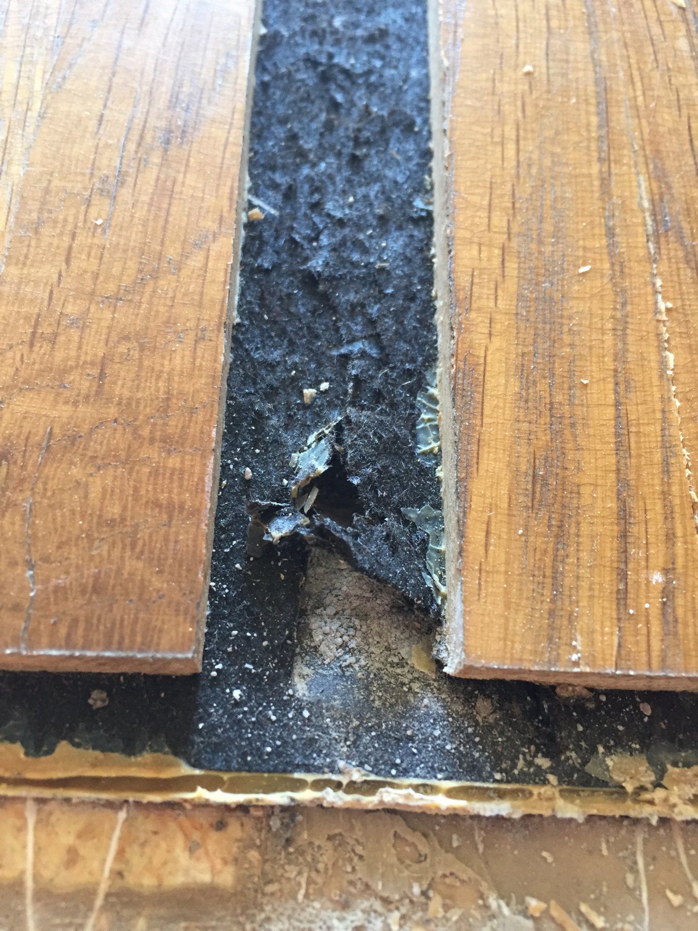 ,schwarzer belag unter parkett