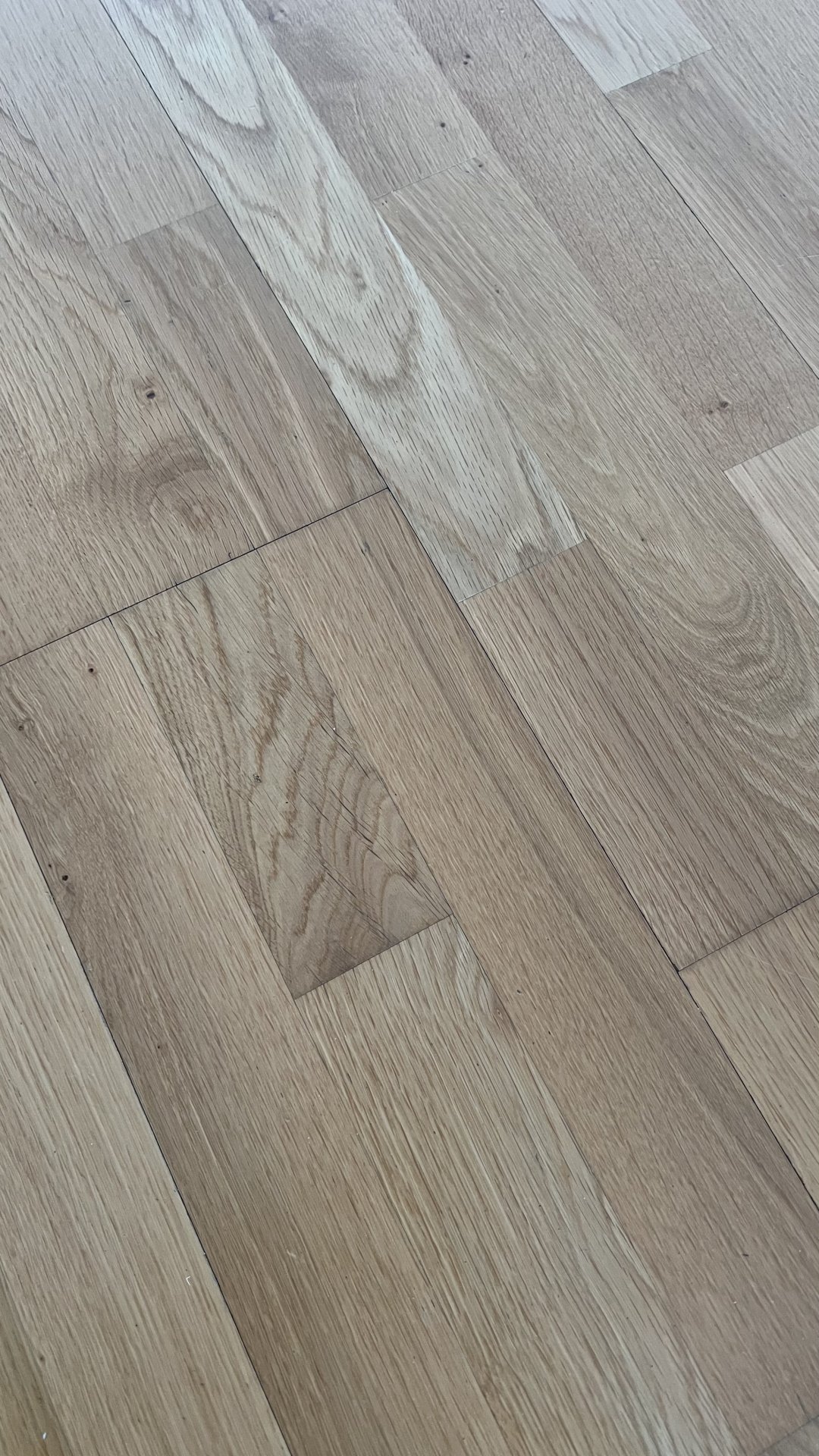 Auf den Fotos sieht es aus wie werkseitig vorbeschichtetes Fertigparkett wo die abschließende Endbeschichtung vergessen wurde. Sowas gibt es ja jetzt für Heimwerker und es wird fast wie Click-Laminat verlegt.