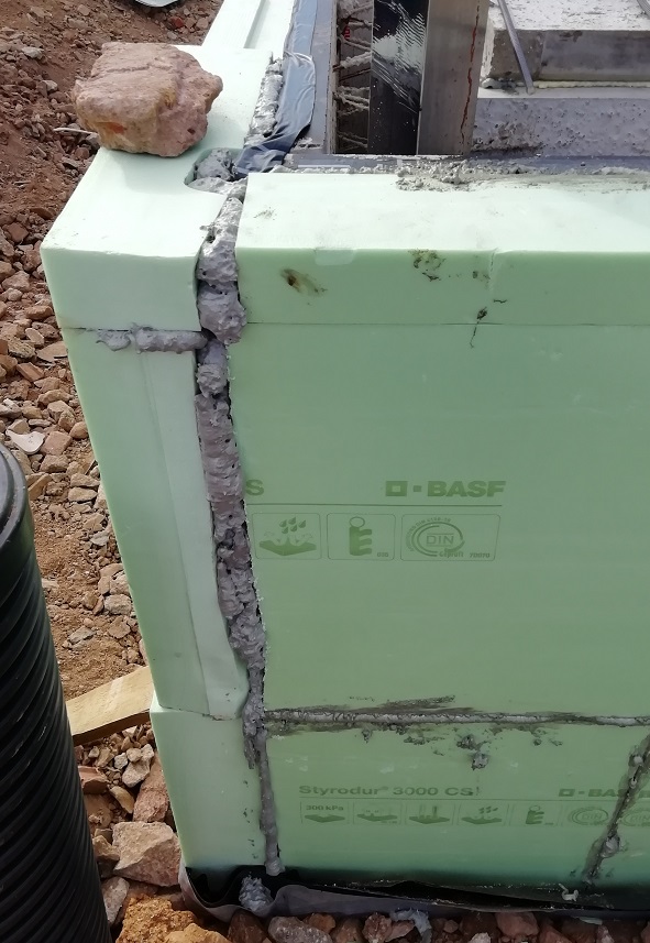 Diskutiere Perimeterdämmung mit Schaum "geflickt" im Abdichtungen im Kellerbereich Forum im Bereich Neubau; Hallo zusammen, die Perimeterdämmung wurde in der Ecke unseres Kellers (WU-Beton + Kaltklebebahn) mit einem Schaum (ist wohl Perimeterschaum)...