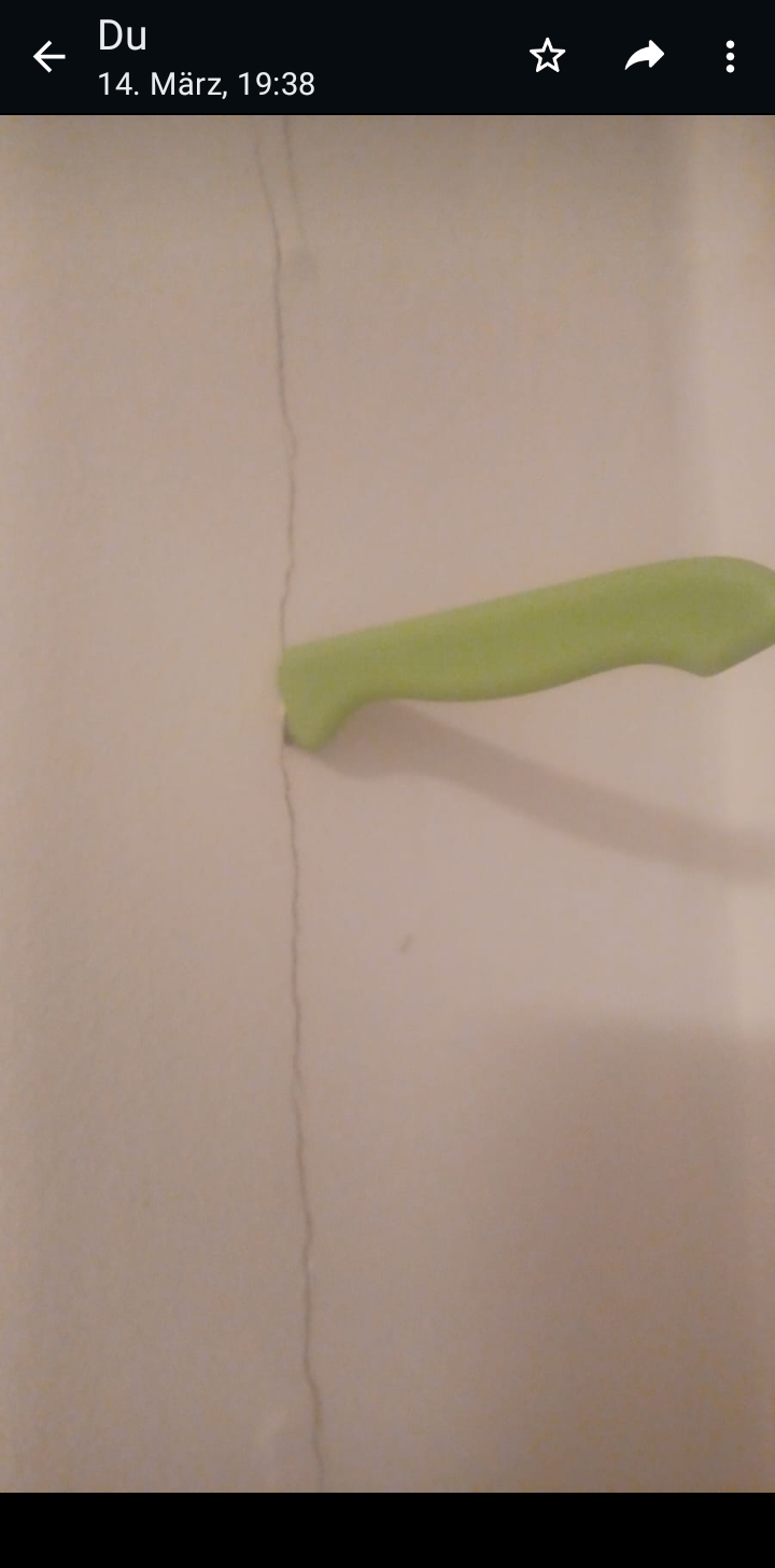 Am meistens Sorgen machen mir die 4 deutlich sichtbaren risse und die Tatsache das insgesamt 5 risse an einer Wand (Bad) sind und das es so plötzlich kam. Wir wohnen seid Oktober 2021 hier und vorher war nie etwas gewesen bis auf der Haarris der nun deutlich größer ist und man eine Klinge vom Messer verschwinden lassen kann.
