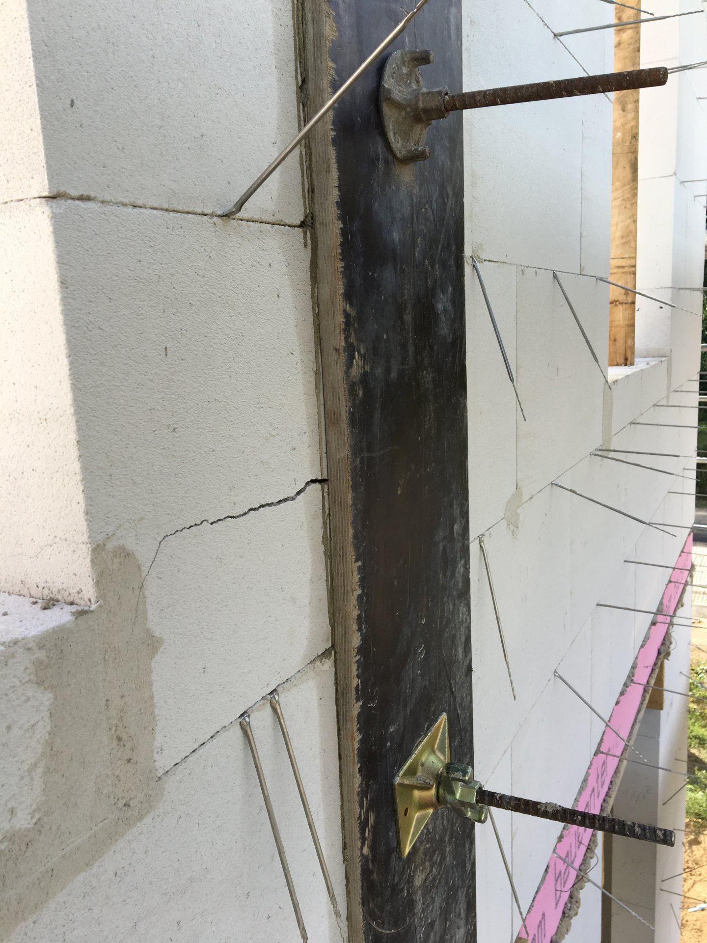Diskutiere Porenbeton Riss im Mauerwerk Forum im Bereich Neubau; Moin, Wir bauen, bzw. lassen gerade unser Haus bauen. Leider ist beim schütten einer Stahlbetonstütze wohl etwas schief gegangen. Rechts der...