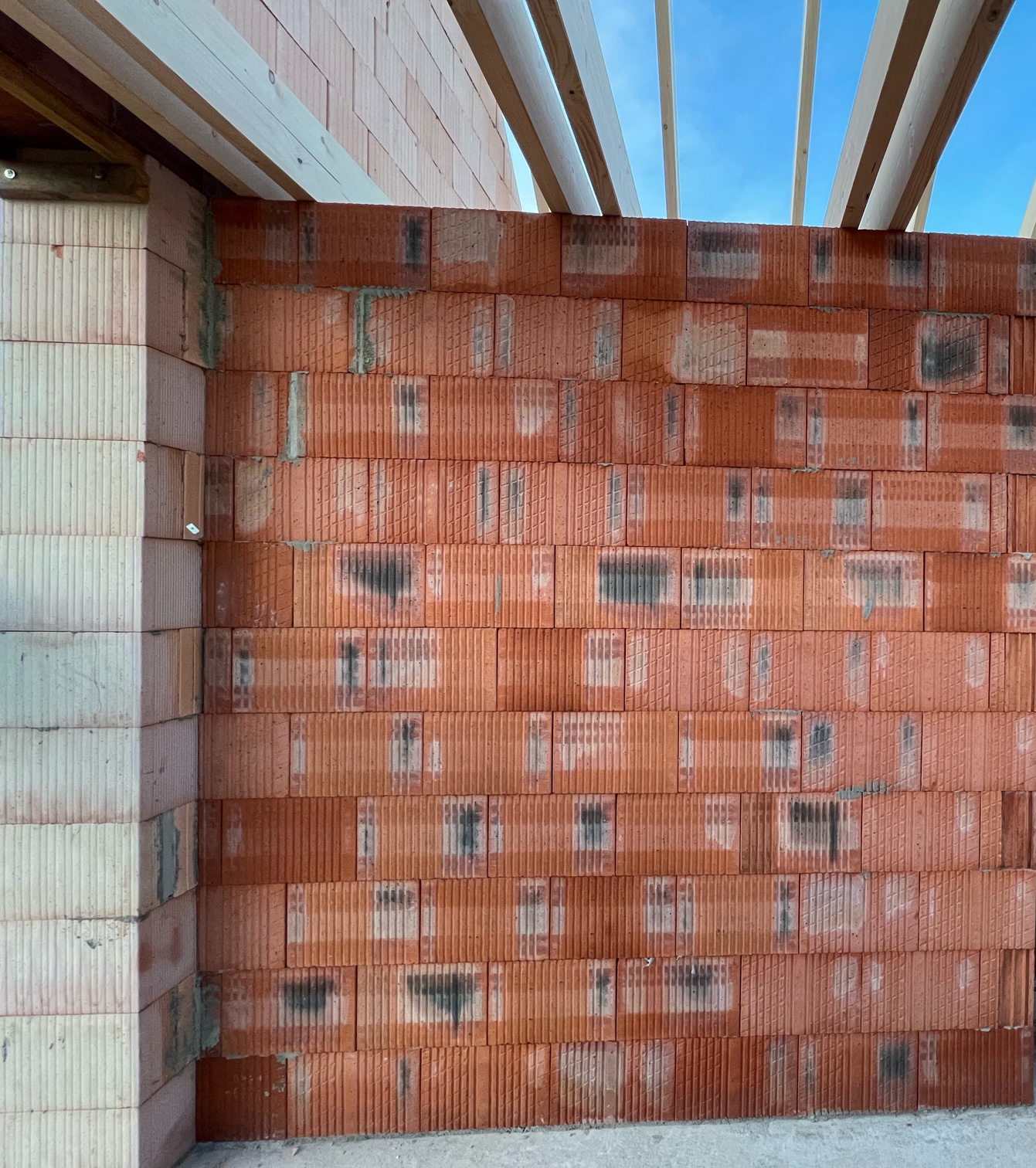 Diskutiere Poroton Ziegel - schwarze Flecken - Schimmel / Brand? im Mauerwerk Forum im Bereich Neubau; Hallo zusammen, wir bauen gerade ein Einfamilienhaus aus Wienberger Poroton. Alle Außenwände und die Innenwände im EG sind soweit ok. Im DG...