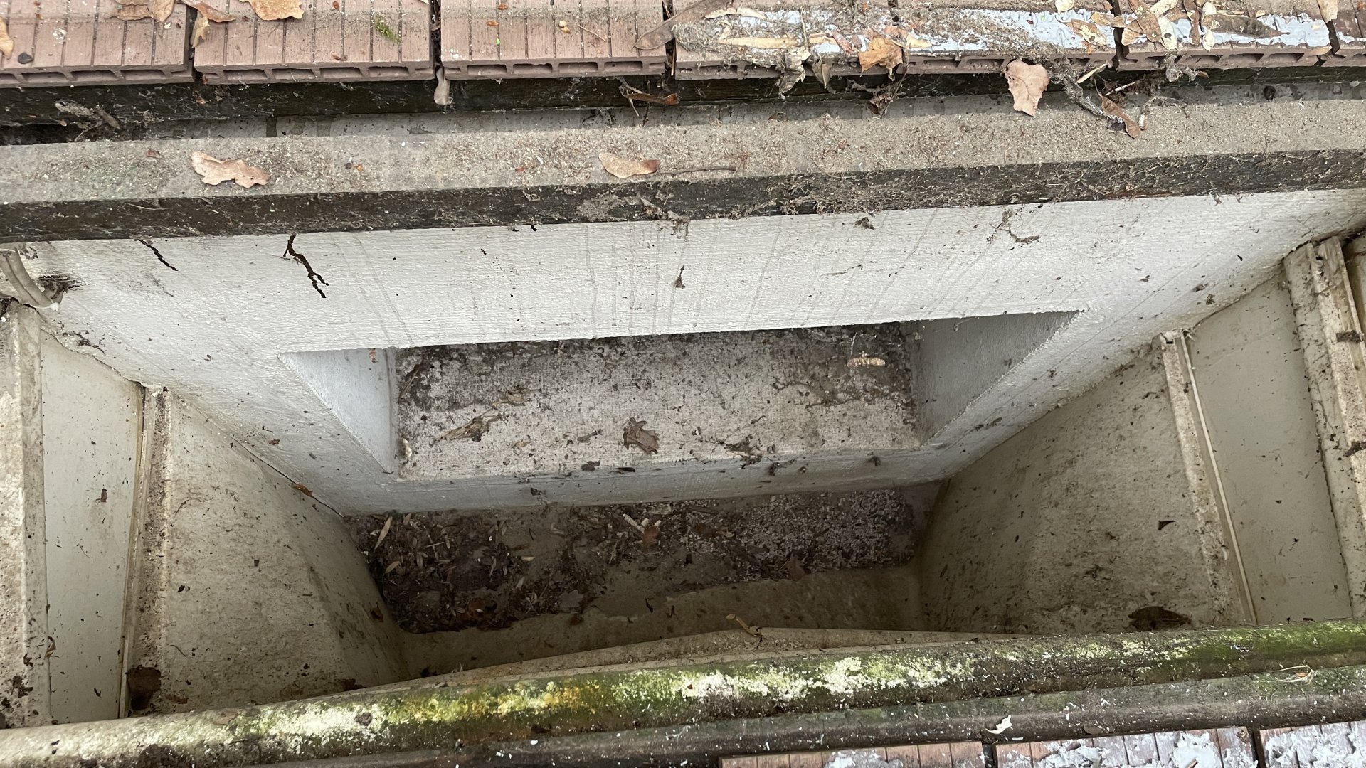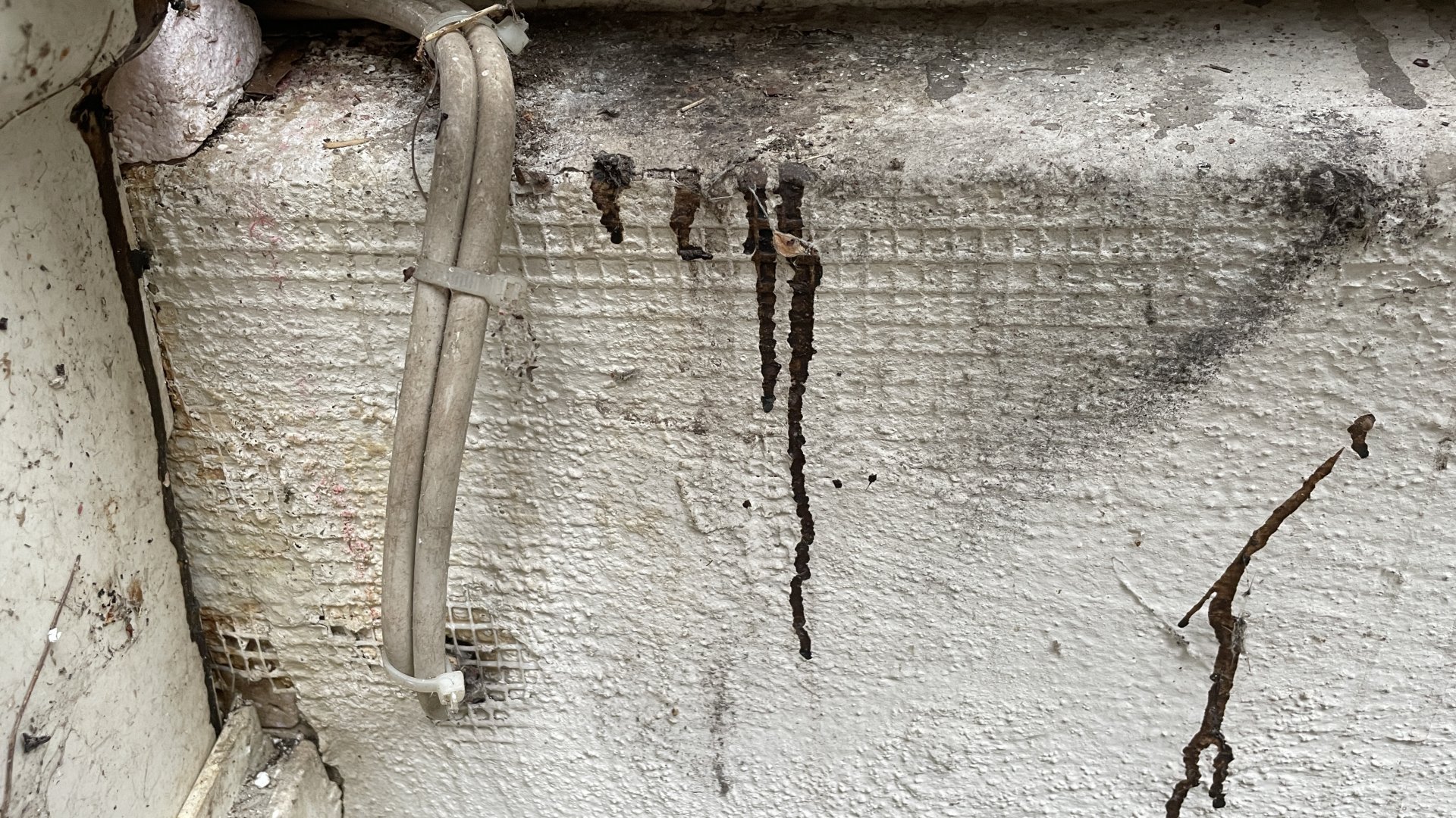 Kernbohrung Geschossdecke Wohnzimmer: Staub / Schmutzwasser