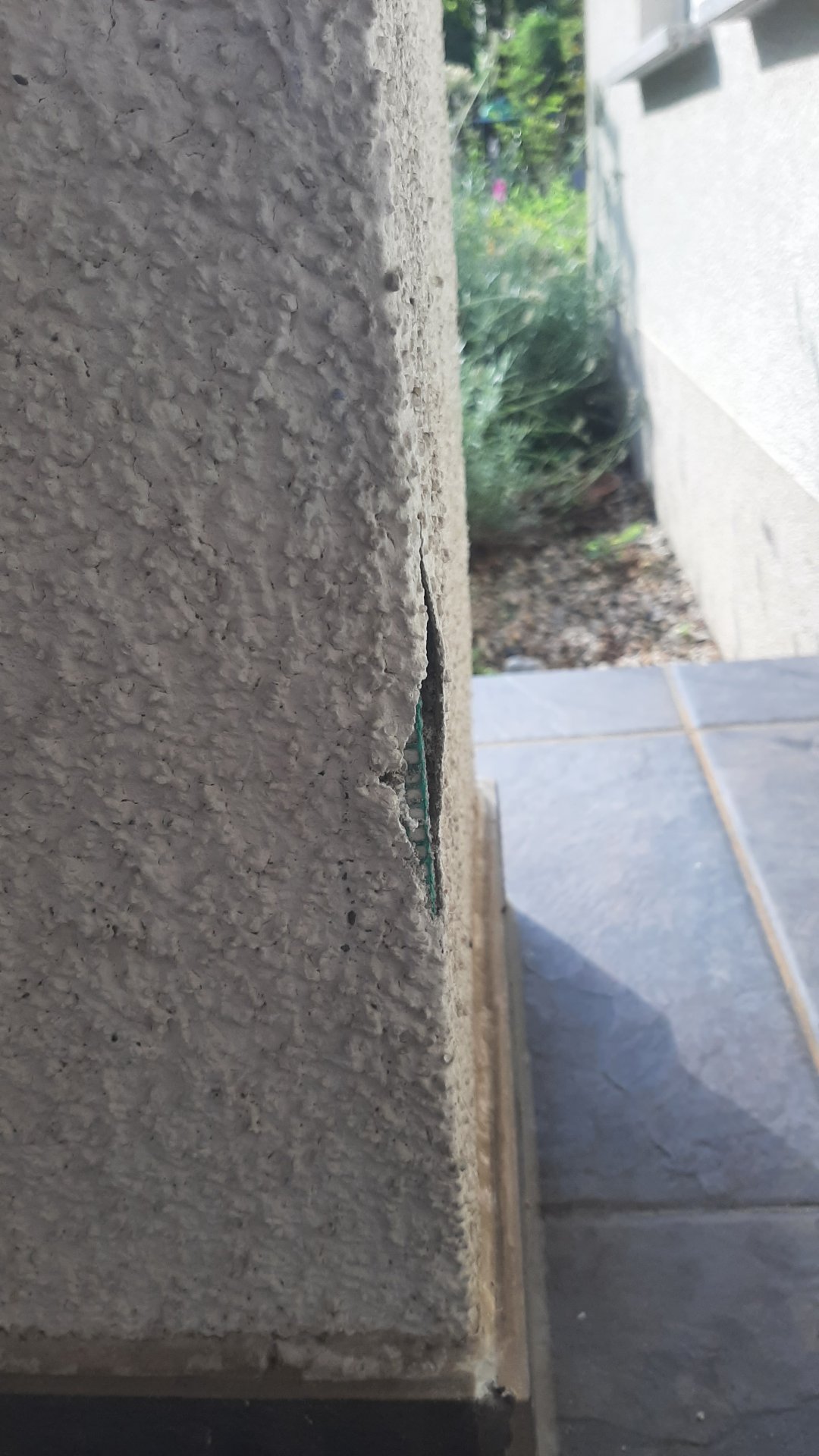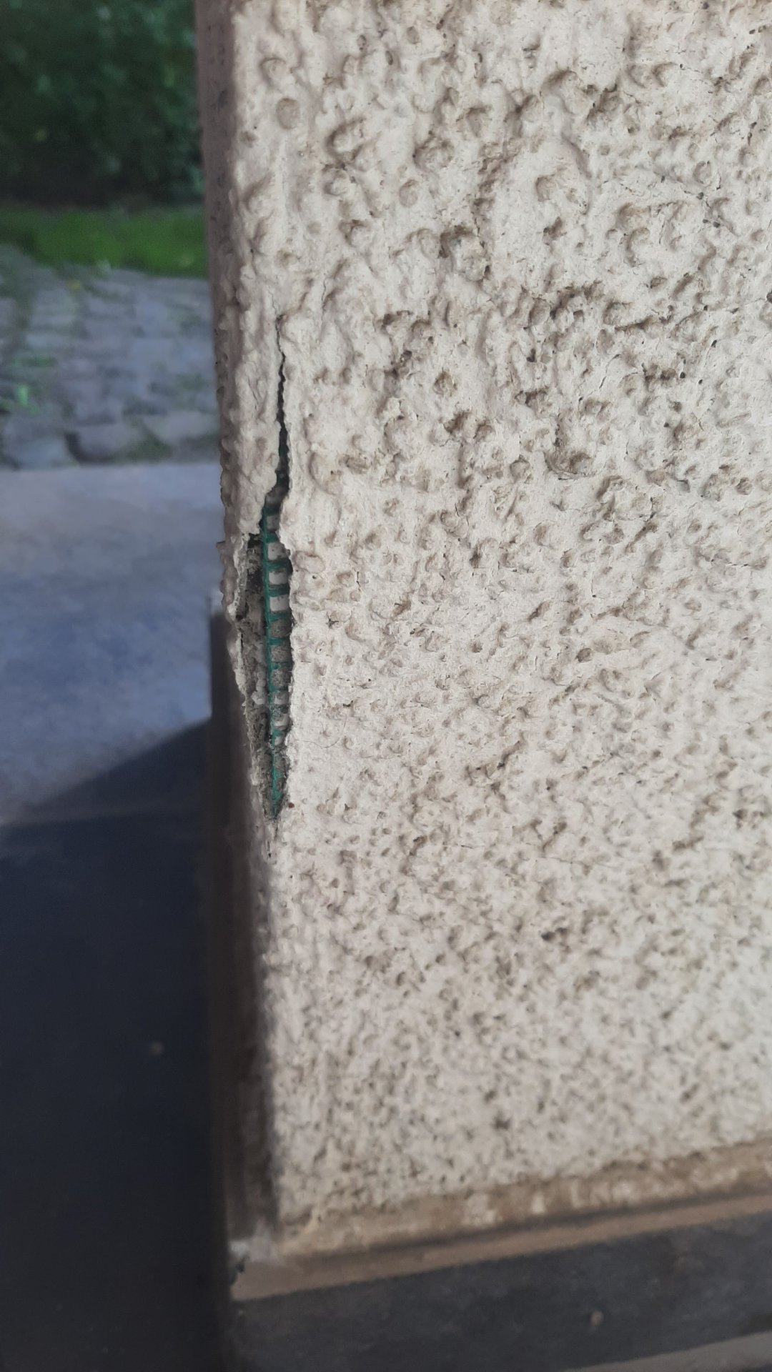 Ich nehme an, dass es eine mechanische Einwirkung auf eine/diese Hohlkammer die Ursache sein könnte. Wenn es so ist, dass hier diese Hartschaumecken zum Verkleiden genommen wurden, halten sie nicht unbedingt einen sperrigen Gegenstand, der ins Haus soll und sich verkantet, aus.