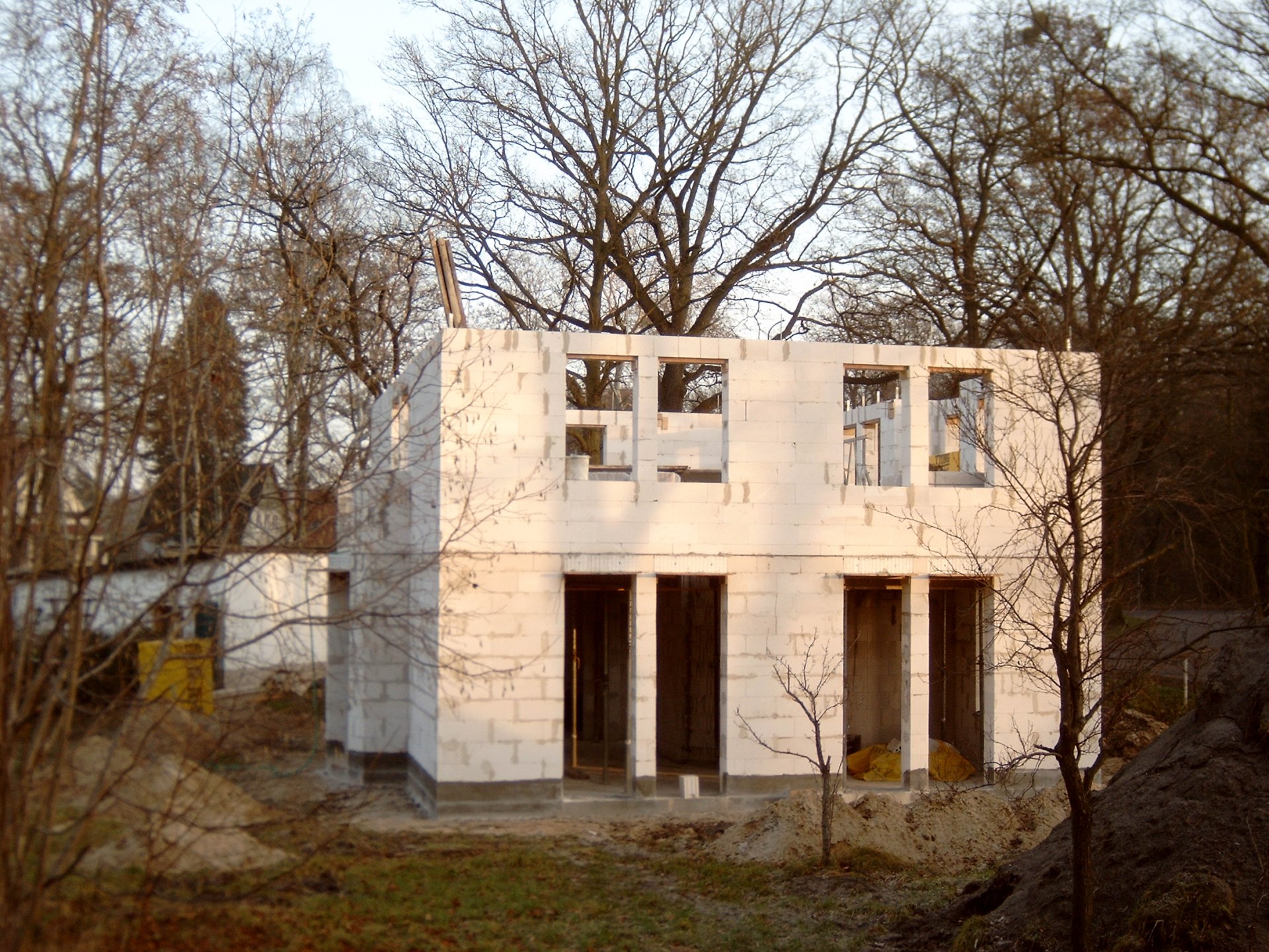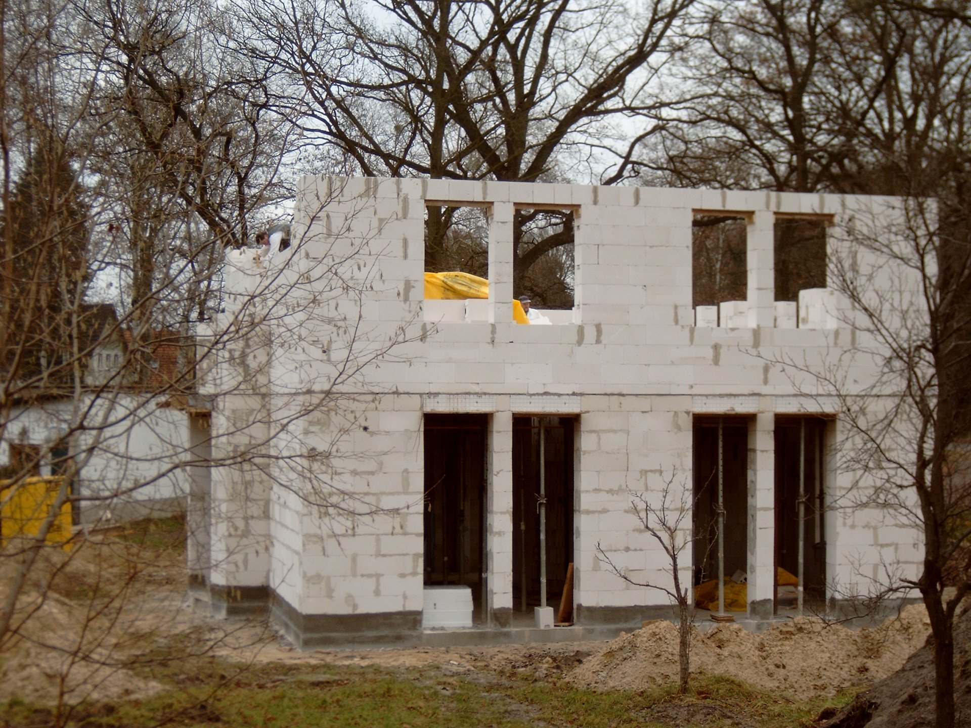 Fabian, weil Du gefragt hattest: Die Rohbau-Fensteröffnungen gehen tatsächlich bis unter die Geschossdecke, die später eingebauten Rolladenkästen sind auf den Rohbaufotos noch nicht zu sehen.