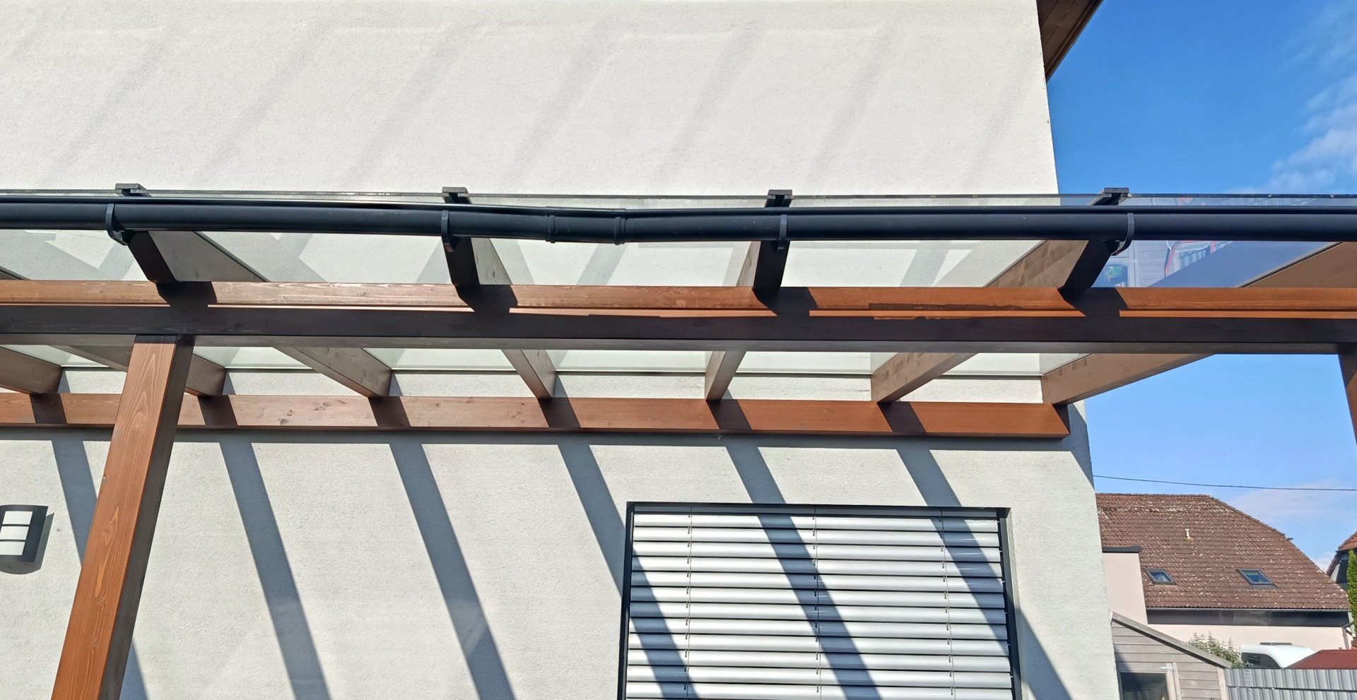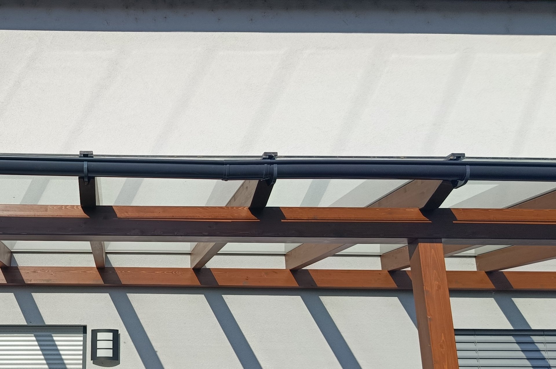 Vielleicht hilft es auch, wenn die Verbinder genau in der Mitte zwischen 2 "Haken" sind um so den freihängenden Bereich der Dachrinne zu minimieren, aber ich habe da wenig Hoffnung, die meisten dieser Rinnen sehen nach einiger Zeit so aus. Und dieses Ding passt ja nun auch mal überhaupt nicht zu dem Qualitätsanspruch der Terassenüberdachung :)