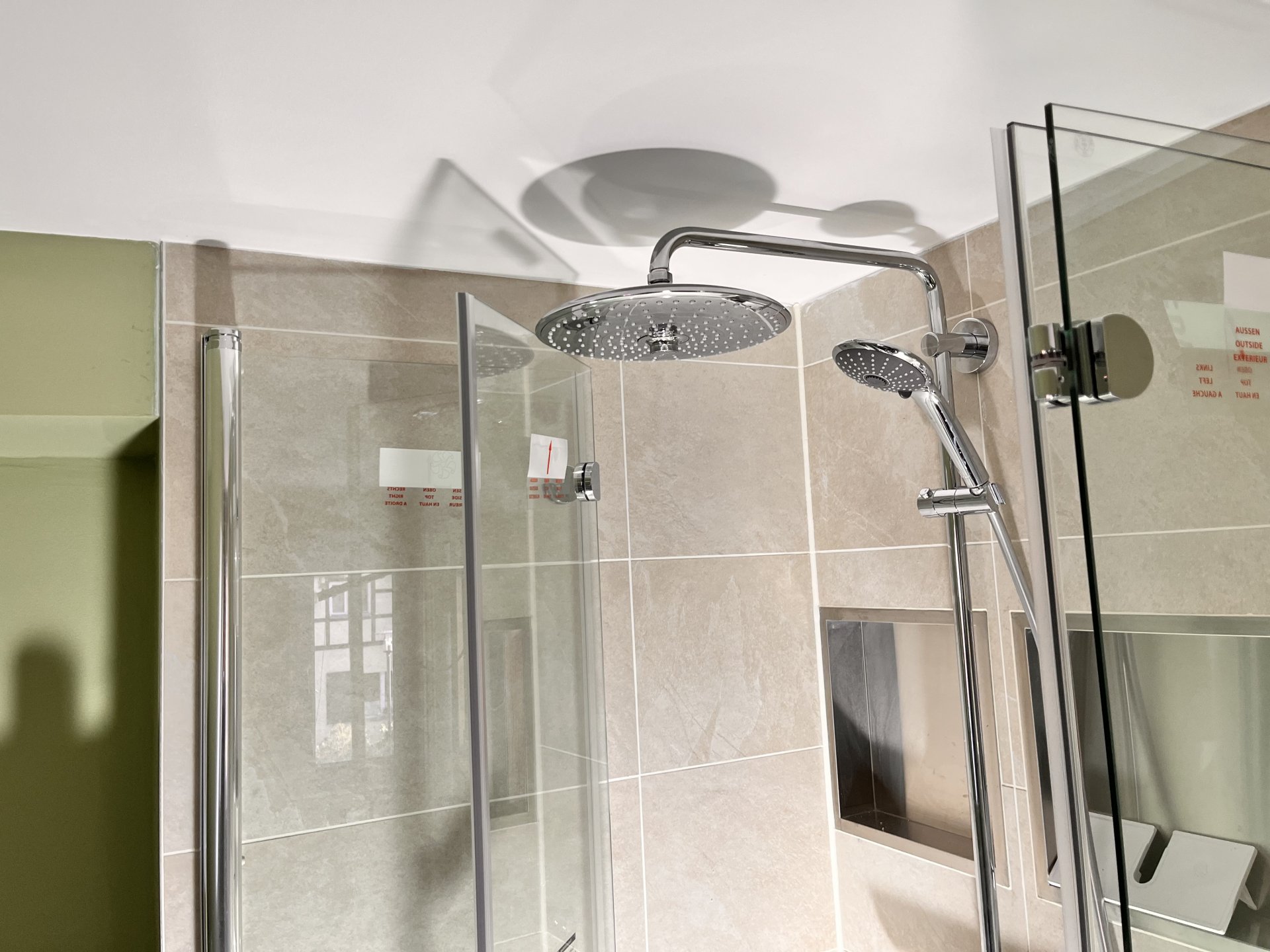 Diskutiere Regenwasser-Duschbrause an der Decke befestigen? im Sanitär Forum im Bereich Haustechnik; Hallo in die Runde, Die neu eingebaute Duschfalttür kollidiert mit der neu eingebauten Regenwasserdusche am Duschkopf. Verlängern kann man die...