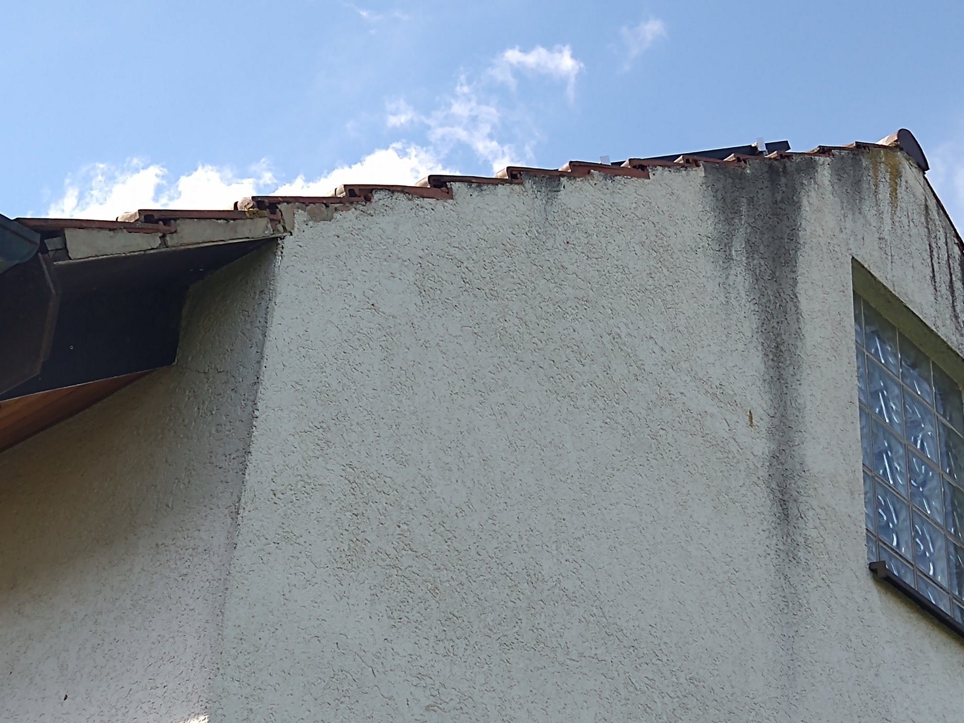 Diskutiere Regenwasser läuft Giebelwand herunter im "Bautenschutz" Forum im Bereich Altbau; Hallo zusammen, seit längerem stört mich schon der Übergang von Dach zu Giebelwand unserer Garage. Dort fließt das Wasser über die Ziegel direkt...