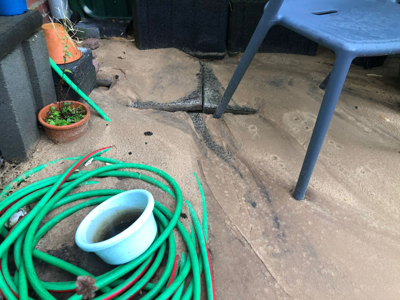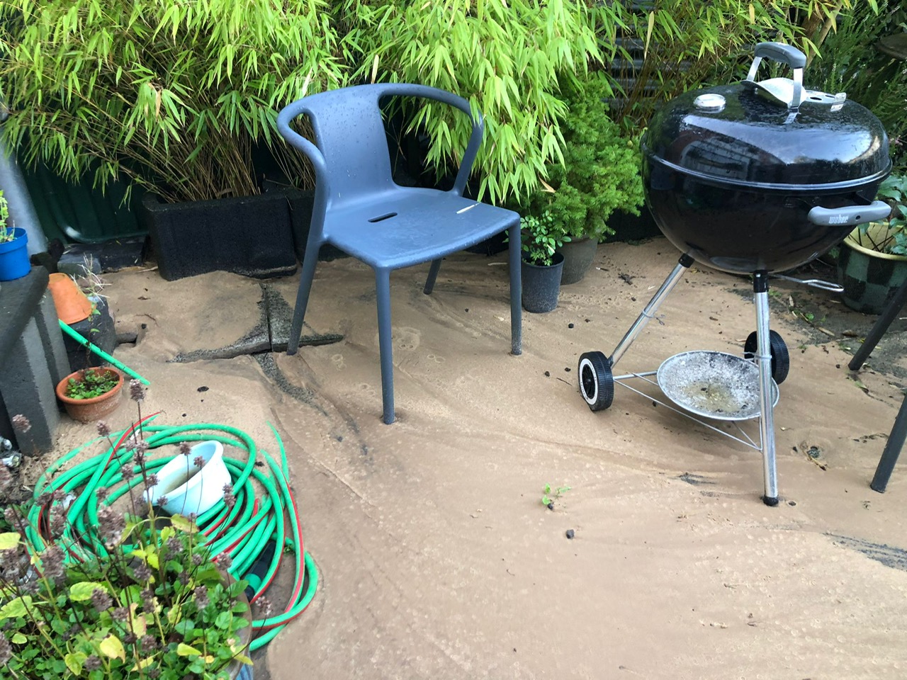 Bei meiner Mutter haben wir das Problem, dass bei sehr starkem Regen die Bodenplatten immer wieder unterspült werden immer Garten.