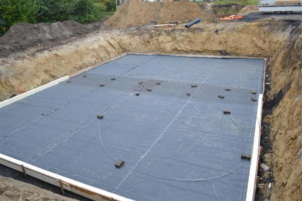 Bodenplatte mit Dämmung. Ringerder vorhanden, kein Fundamenterder