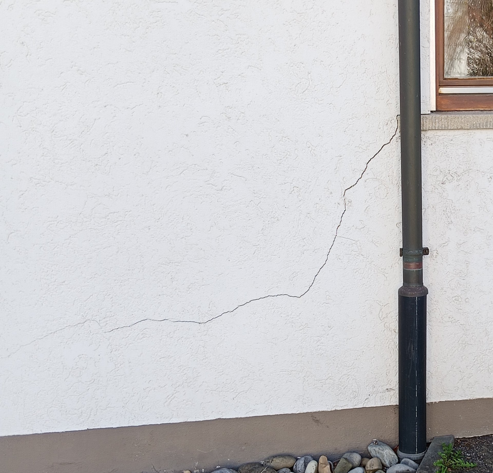 Mauerwerk risse in Außenwand bei Haus in Hanglage