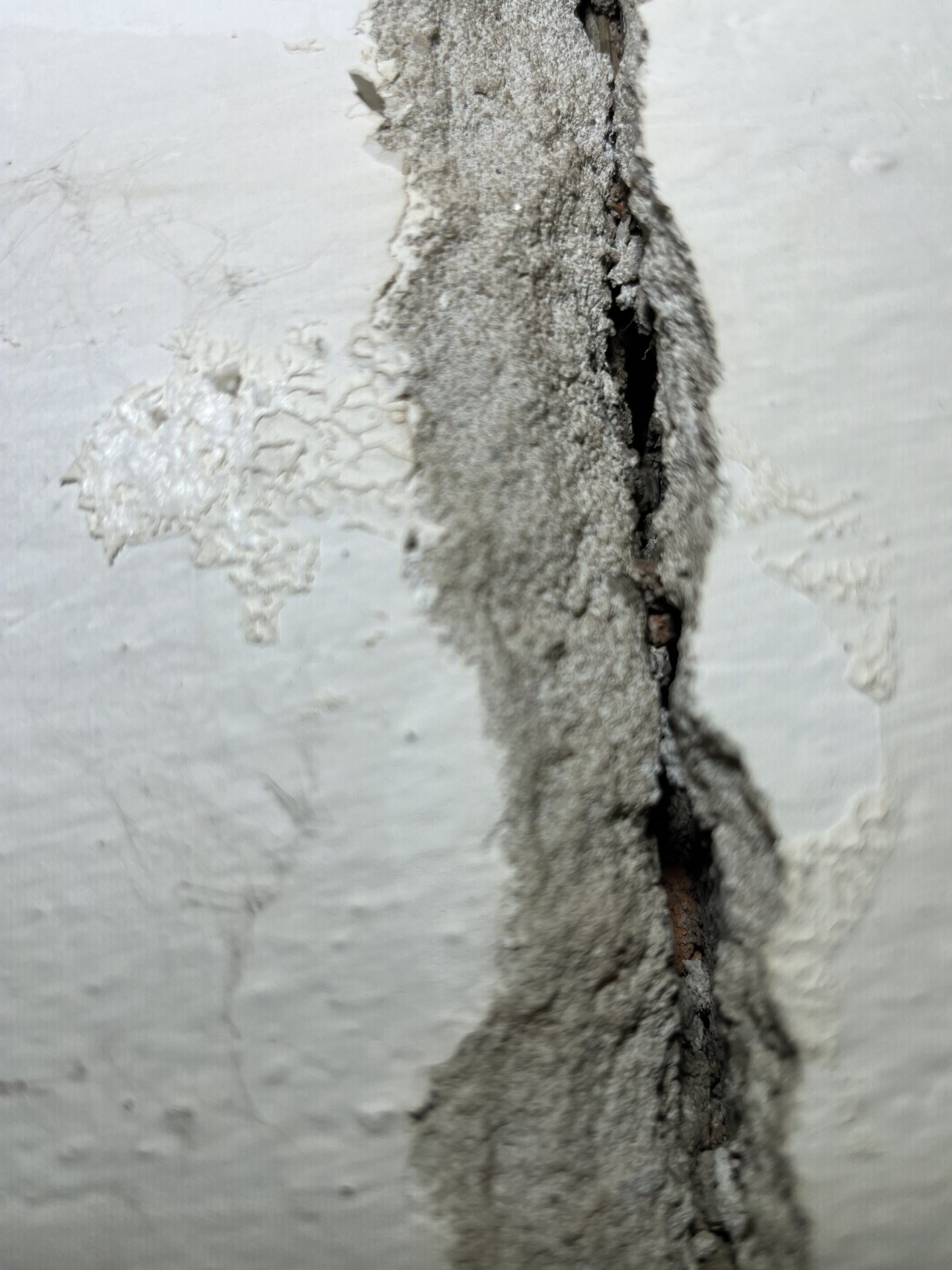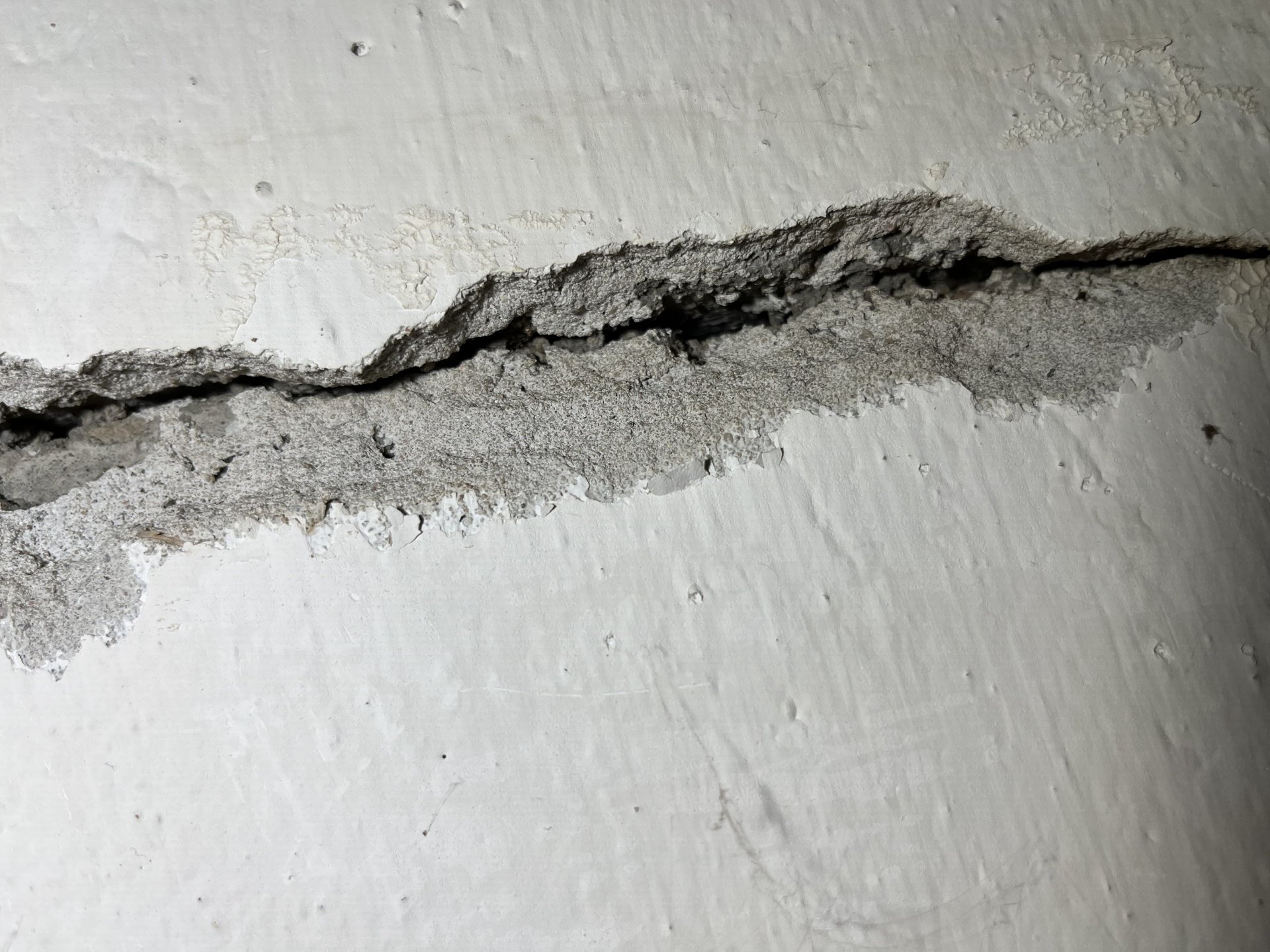 Im Obergeschoss Risse zwischen Decke und Wand.