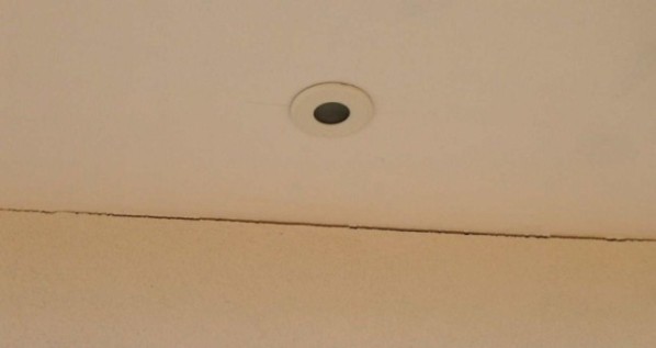 Risse in der Farbe in der Decke und am Übergang Wand/Decke