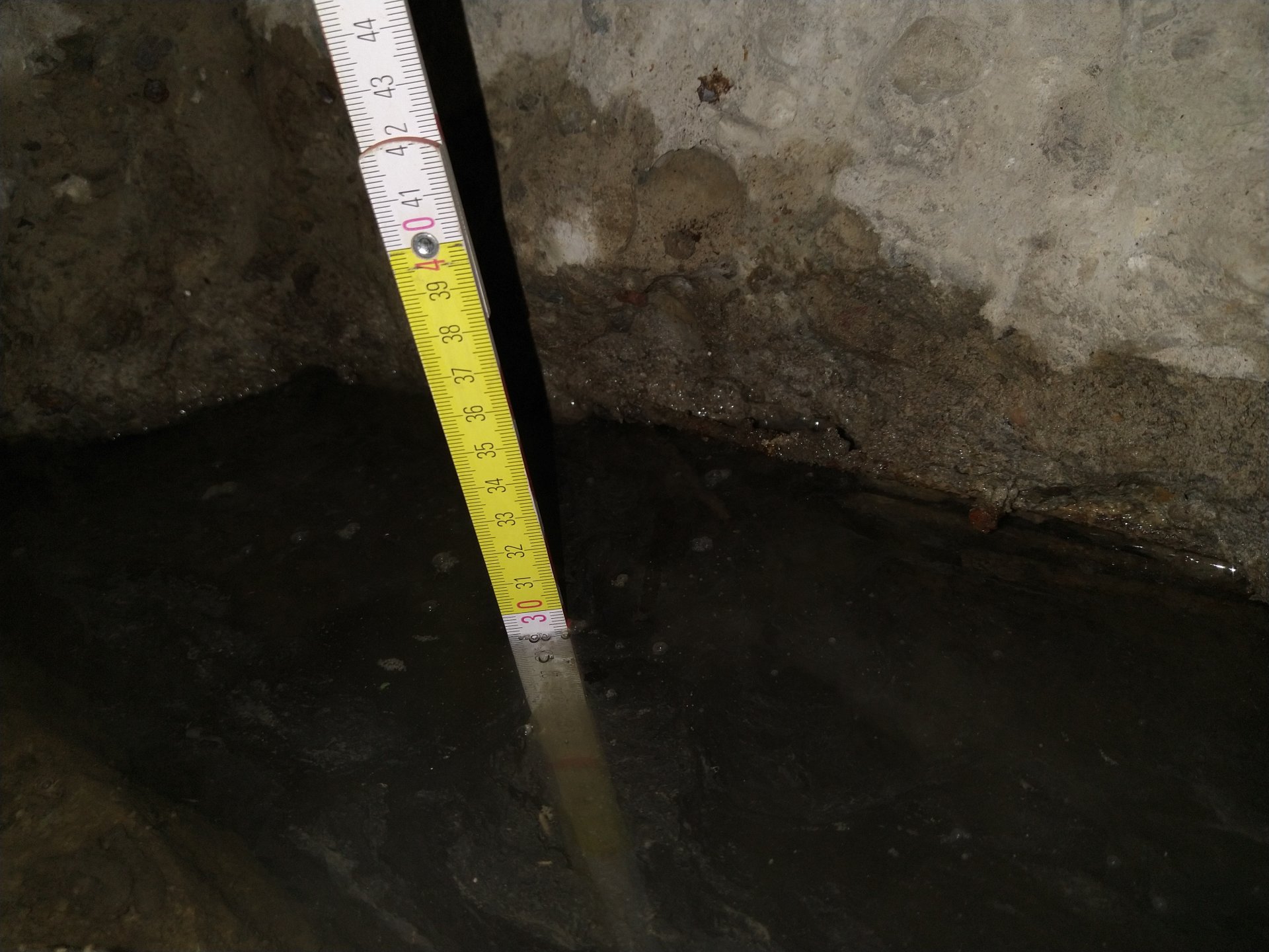 Es sind also zwei Baustellen: drückendes Wasser von unten und seitlich durch Risse in der Mauer hindurch.