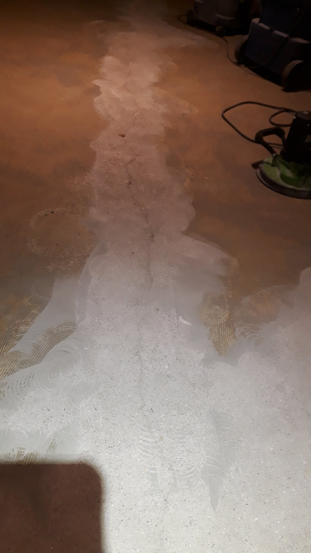 Estrich Riss / Kuhle: Hallo kann uns evtl. jemand weiter helfen und sagen warum der Estrich an dieser Stelle so aussieht? Es ist kein richtiger Riss, eher eine... -