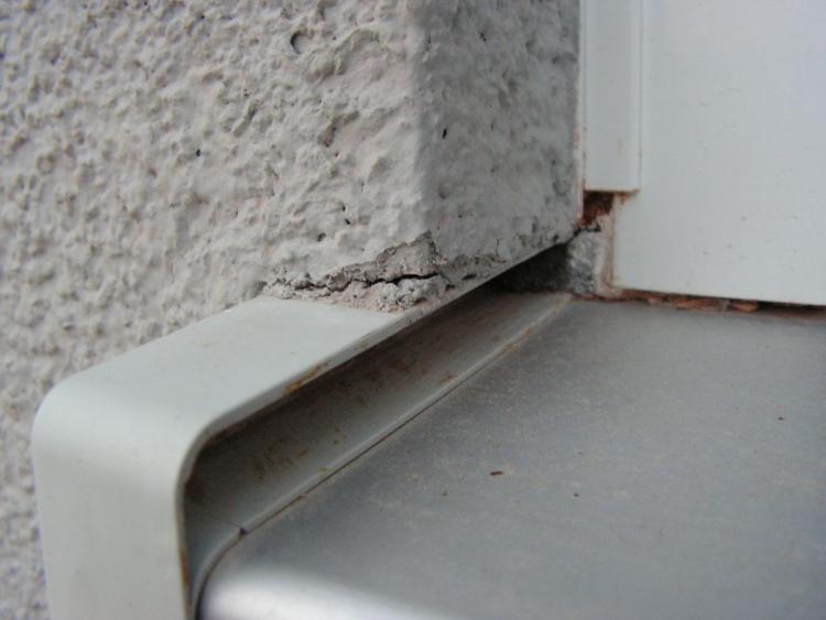 Fasade bröckelt an Fenster- und Rolladenanschlüssen