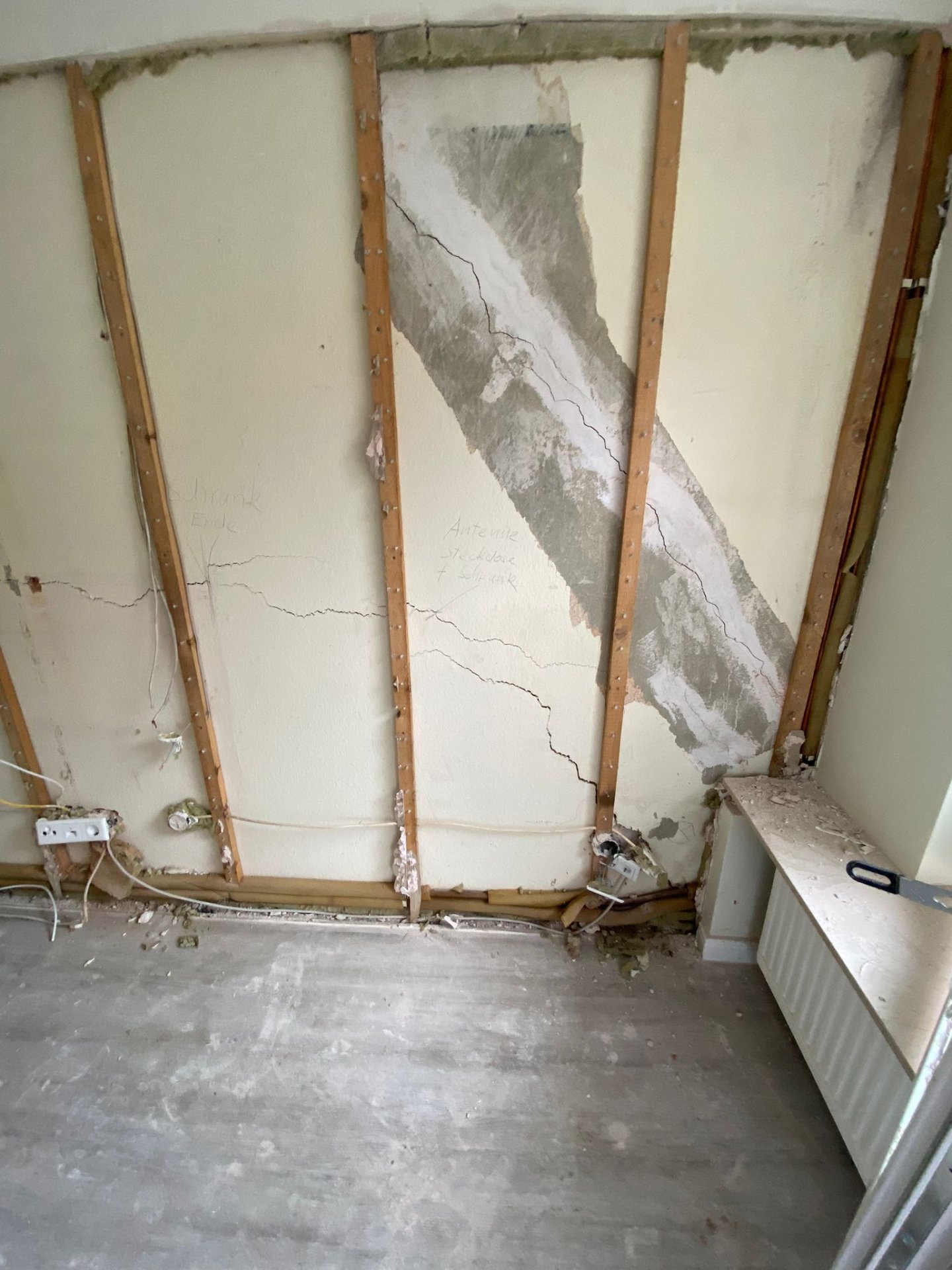 Diskutiere Risse in der Wand (Doppelhaushälfte die Wand zum Nachbarn) im Sanierungskonzept & Kostenschätzung Forum im Bereich Altbau; Moin, wir renovieren gerade unsere Doppelhaushälfte aus dem Jahr 1939 . Das Büro Zimmer soll zu der neuen Küche werden. Jetzt kamen die Kollegen...