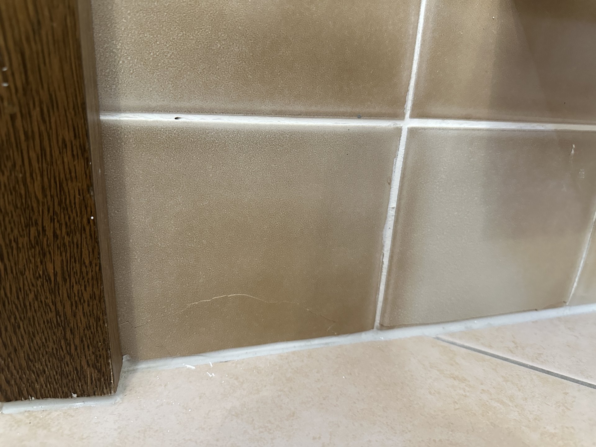 Risse in Bad-Wandfliesen: Hallo zusammen, bei uns reißen wiederholt an verschiedenen Stellen Wandfliesen in beiden Bädern. - zum zweiten mal neben WC (Viertelkreisbogen... -