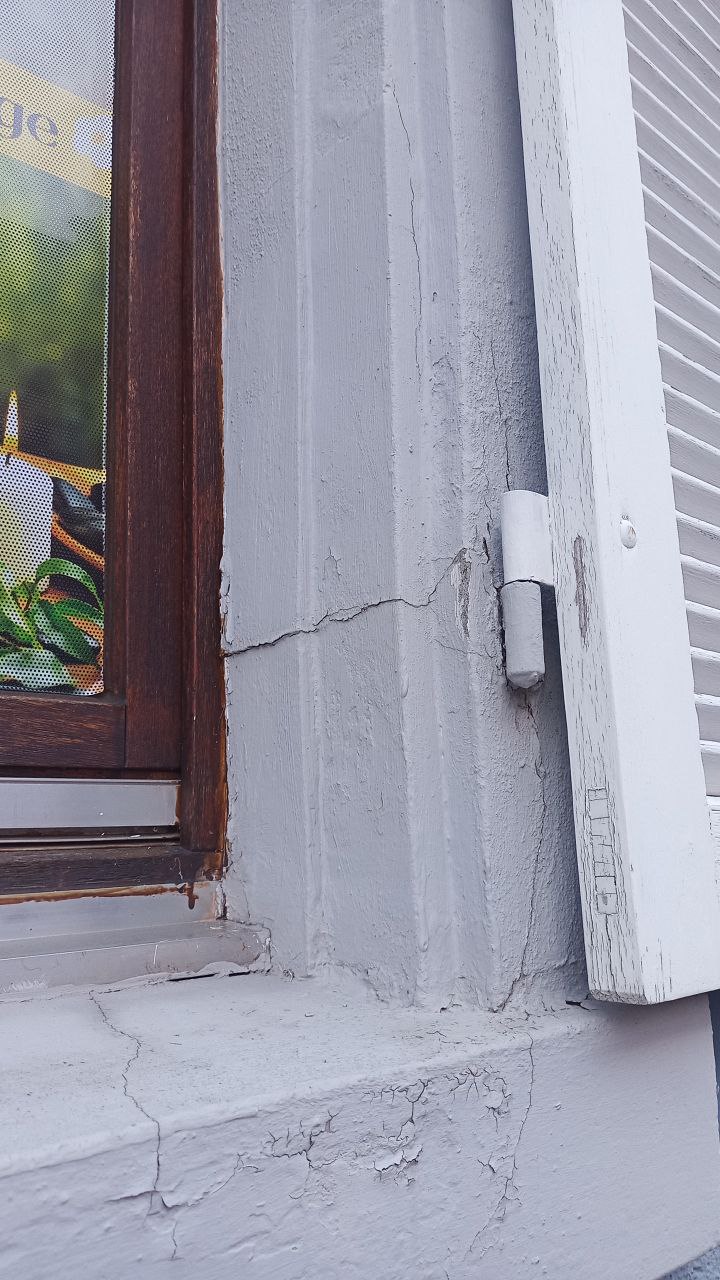 Risse rund um Fensterladen-Angel an Außenfassade