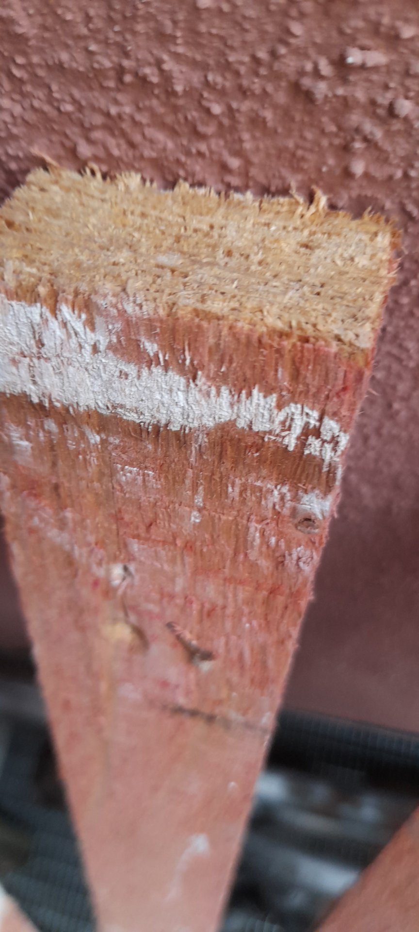 Diskutiere Rötlich gefärbte Latten in der Deckenkonstruktion - Sanierung ja oder nein? im Baubiologie Forum im Bereich Rund um den Bau; Wir renovieren gerade unser Bad und haben in der Dusche die Decke demontiert. Leider sind wir dabei auf rötlich gefärbte Latten gestoßen...