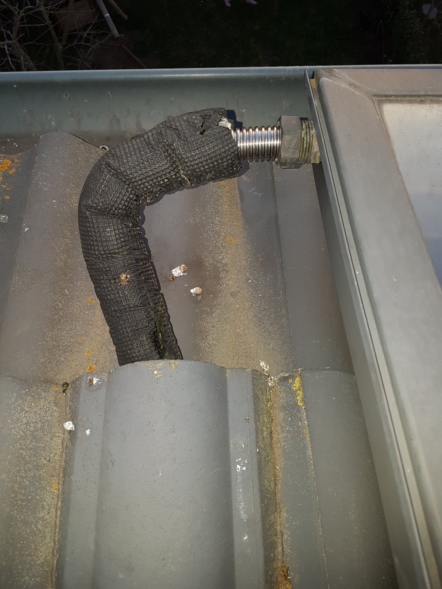 Diskutiere Rohre Solartherme am Dach undicht im Dach Forum im Bereich Neubau; Hallo Leute, hatte plötzlich Wasser unterm Dach welches durch die Rigips Decke im Dachgeschoß durchlief. Nach öffnen der Decke stellte sich...