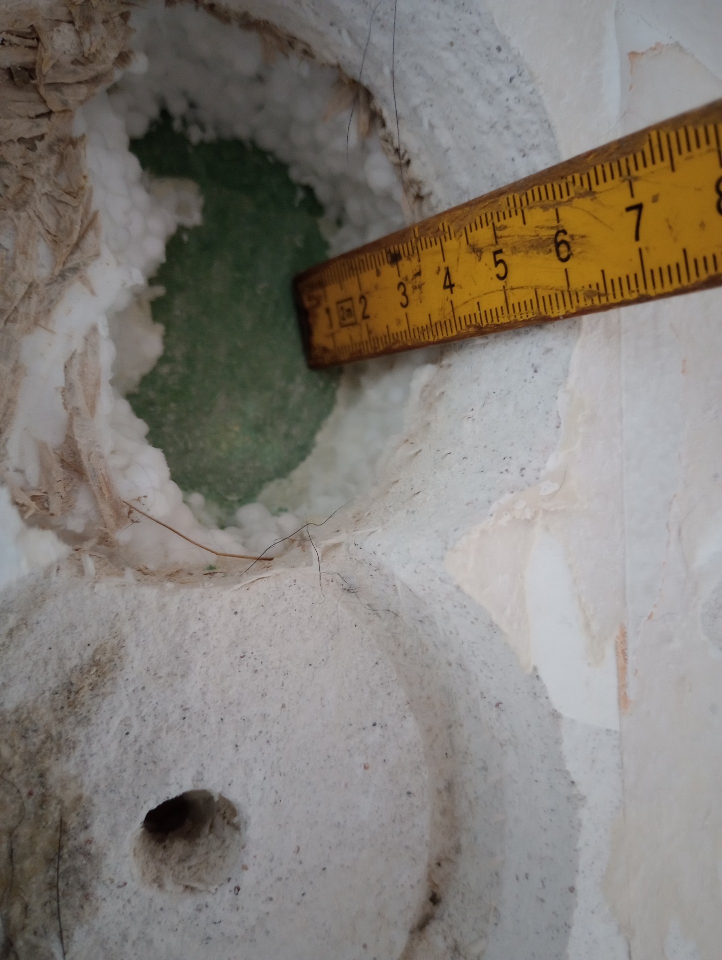 Mutmaßlich Gipskarton. Musst du durch. Also weiter bohren!