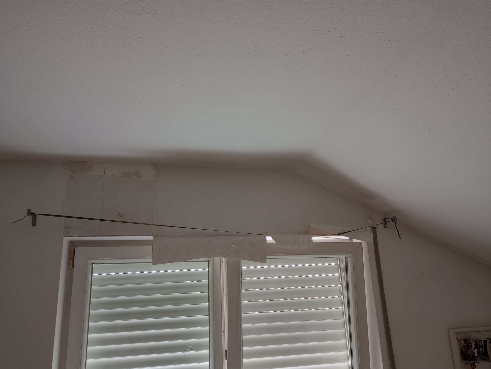 Pustekuchen alles 2 cm vergipst inkl.Putzschiene. Zu allem Überfluss haben die Schlaumaier den Gurt rechts unter die Dachschräge gesetzt und nicht links.