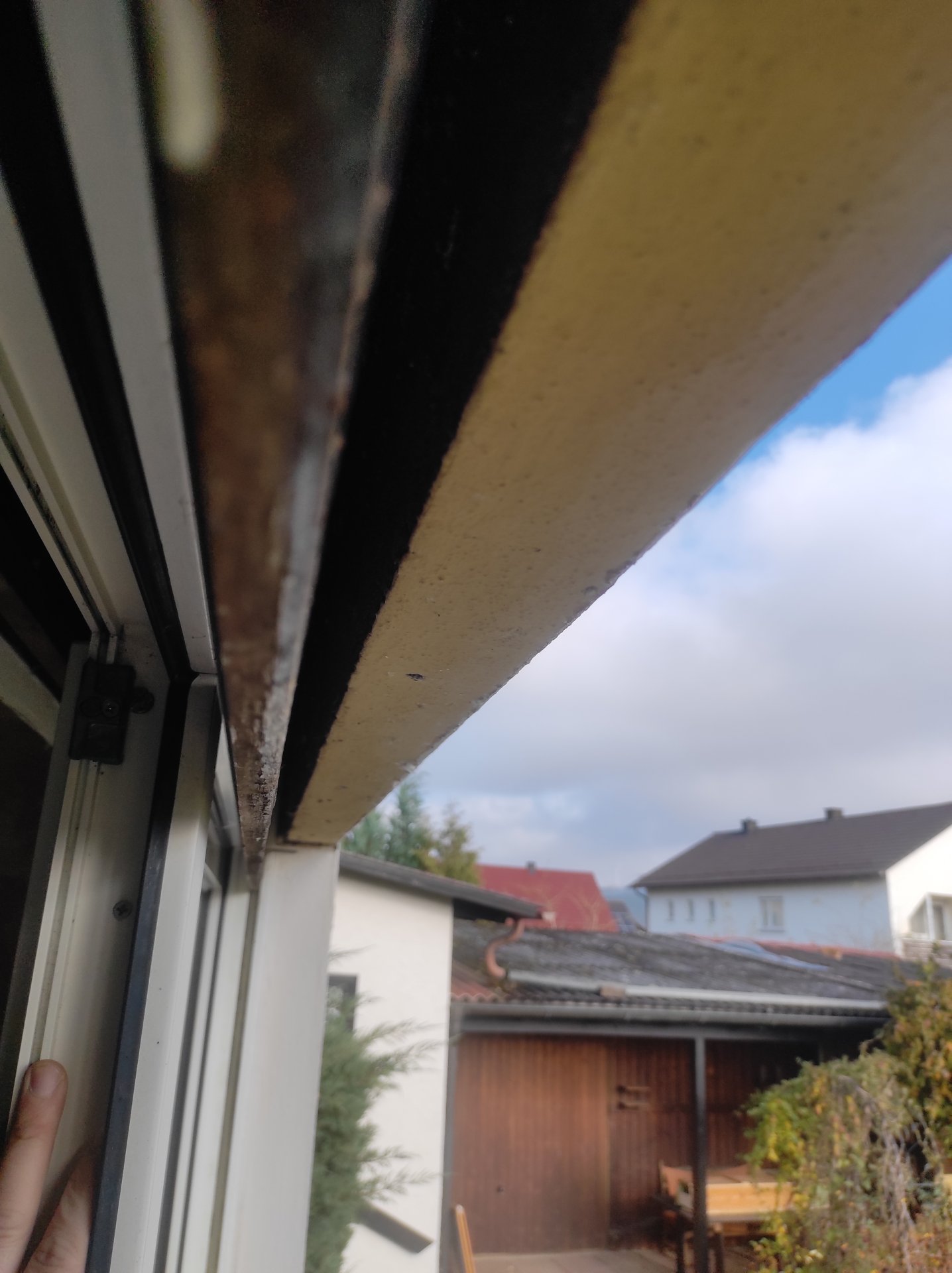 Folgendes Problem stellt sich nun aber in den Weg. Die Laibungstiefe würde für einen 14cm Kasten passen, leider passt die Laibungshöhe nicht. Das Fenster steht bereits jetzt mit dem gesamten Rahmen hinter der äußeren "Rollokastenschürze". Wenn ich nun einen Vorbaukasten montiere gehen mir 14cm Fensterhöhe flöten. Unabhängig davon dass das bescheiden aussieht, frisst das auch Licht. Die genannte "Schürze" außen scheint aus Beton zu bestehen. Ich habe versucht das ganze mal zu fotografieren. Vielleicht kanns einer erkennen. Mittig über dem Rollokasten scheint noch ein weiterer Sturz zu verlaufen der vermutlich den Kniestock aufnimmt. Vielleicht ist es aber auch die Betondecke.