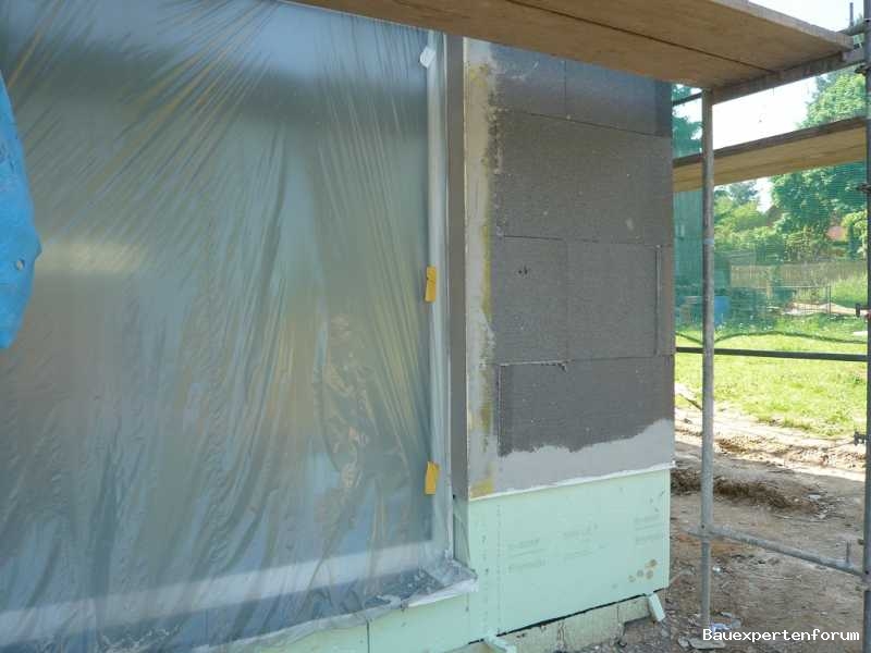 Da bin ich mir nicht ganz sicher. Glaube es wurden auf jede Platte fünf fette Punkte gemacht und um den Rand ne Wurst geschmiert! Aber manchmal wurde die Dämmplatte auch komplett vollgeschmiert. War leider nicht die ganze Zeit dabei und hab ja auch nie für möglich gehalten, das dies jemals eine Rolle spielt! :mauer