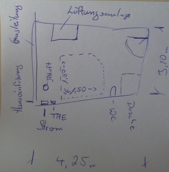 Ich denke Dusche und WC wird man wegen Abstandsfläche nur so machen können. Die Sauna wäre dann der Raumtrenner und ca 80cm von Wasser und Gasleitung und 40 cm von den Panzersicherungen und der TAE Dose.