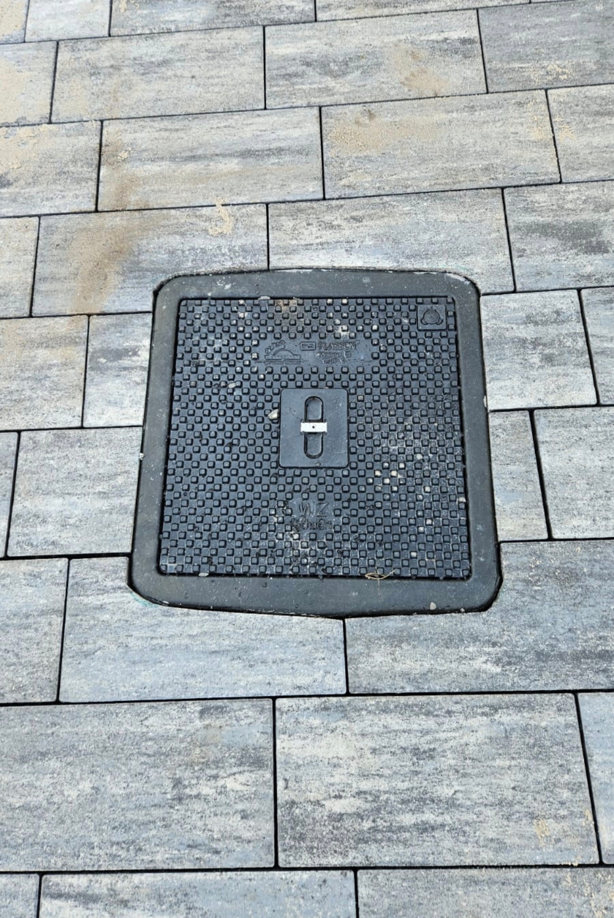 Moin! Bei uns im Hof ist der Schachtdeckel ein echter Dorn im Auge. Der Schacht wurde leider nicht rechtwinklig zum Pflasterverlauf gesetzt. Das Pflaster ist okay, aber durch den schiefen Rahmen sieht alles unsauber aus.