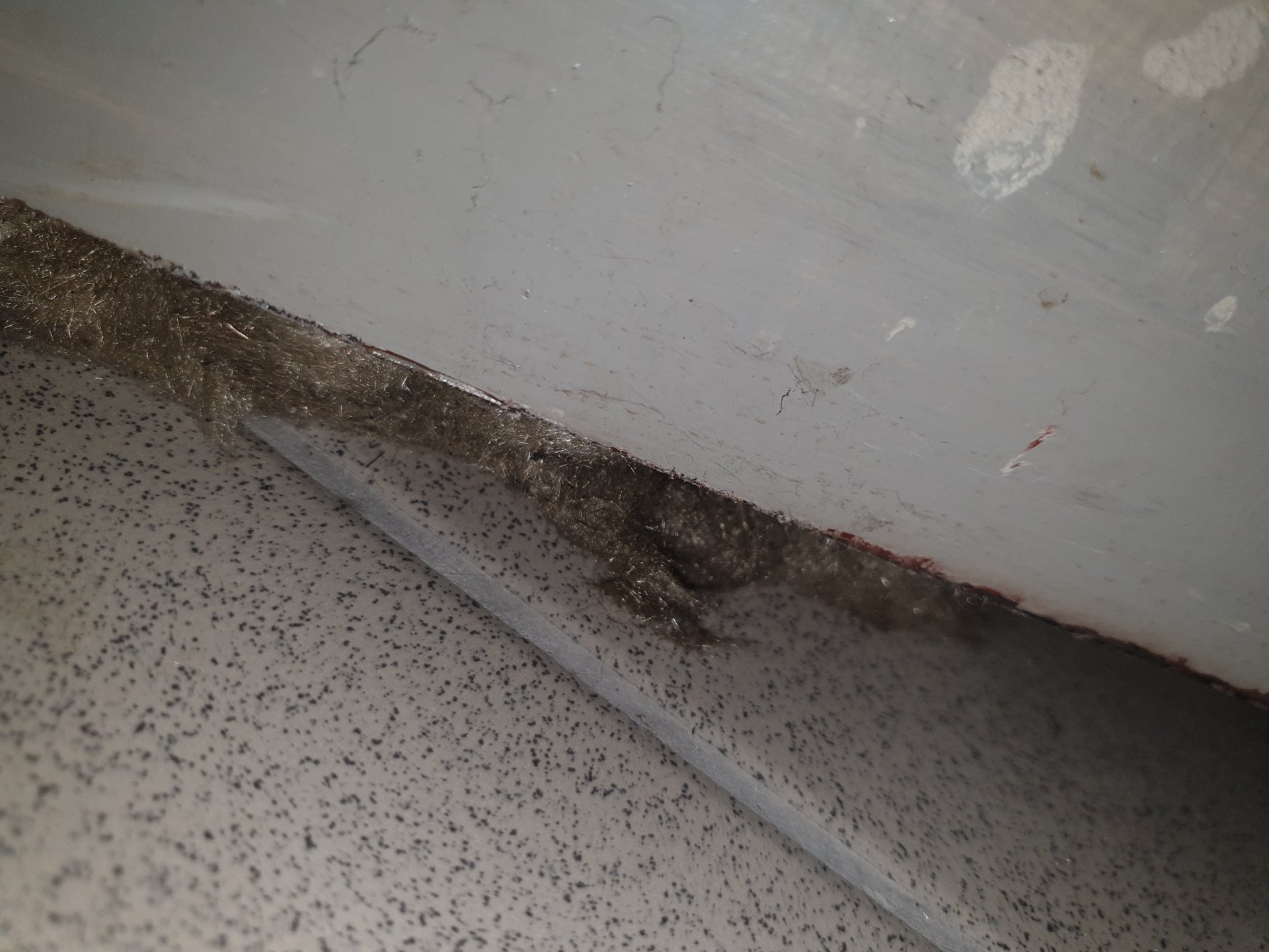 Danke für die Rückmeldungen. Ich habe die Tür unten mit Klebeband einigermaßen luftdicht abgeklebt und mit einem HEPA Sauger die die Rückstände auf dem Boden entfernt. Zudem läuft nun rund um die Uhr im Raum ein HEPA Luftreiniger. Ich werde die Tür ausbauen und entsorgen lassen, dann hat sich das Thema hoffentlich erledigt, dennoch den Dämmstoff analysieren lassen. Mal sehen, was dabei rauskommt.