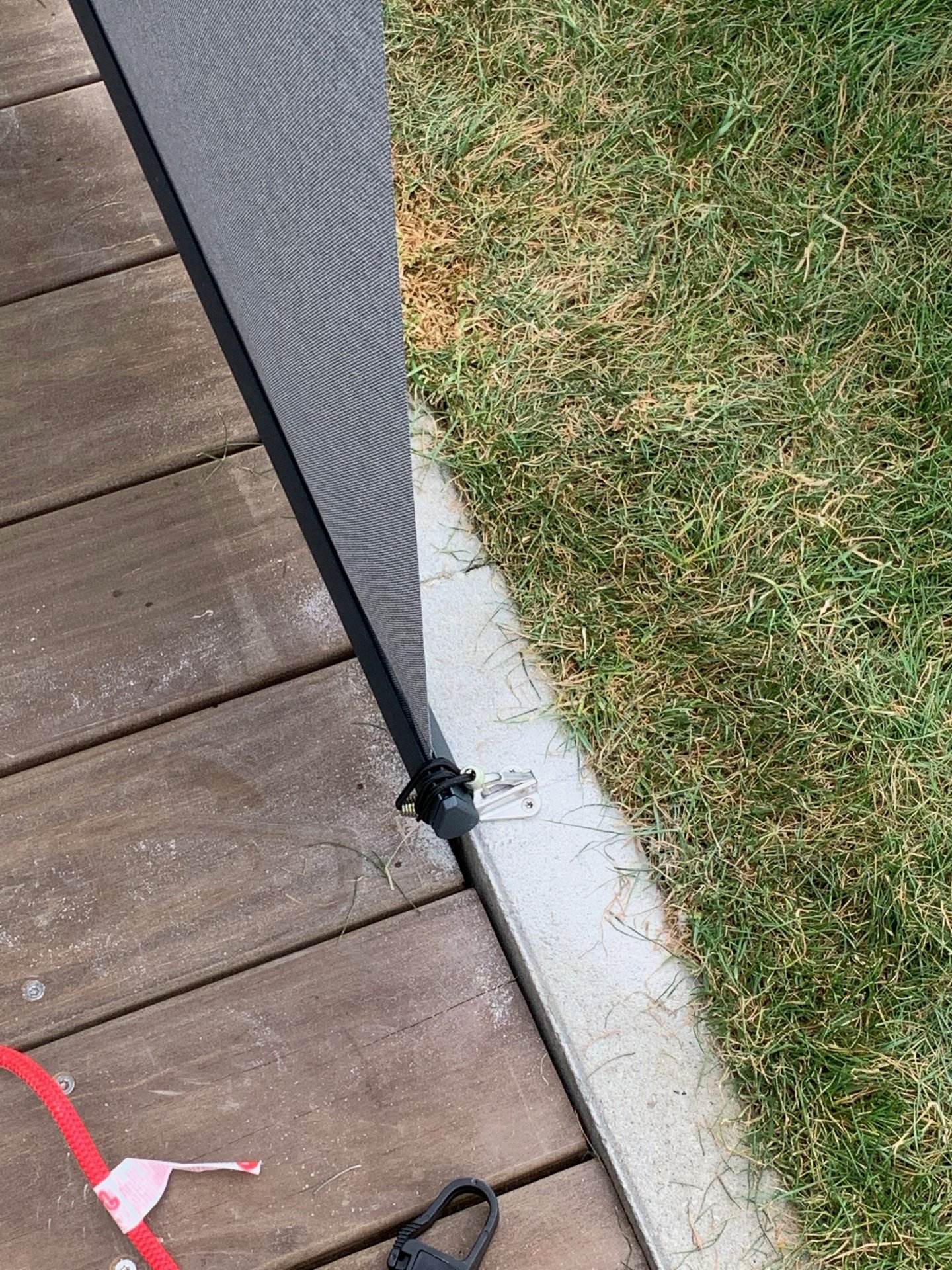 ich habe eine Weinor Gelenkarmmarkise mit Schattenplus/Volant Funktion ohne Führungsschiene (siehe Bild). Der Schattenplus wackelt bei leichtem Wind aber ziemlich stark, so dass ich diesen gerne befestigen würde, wenn er komplett ausgefahren ist.