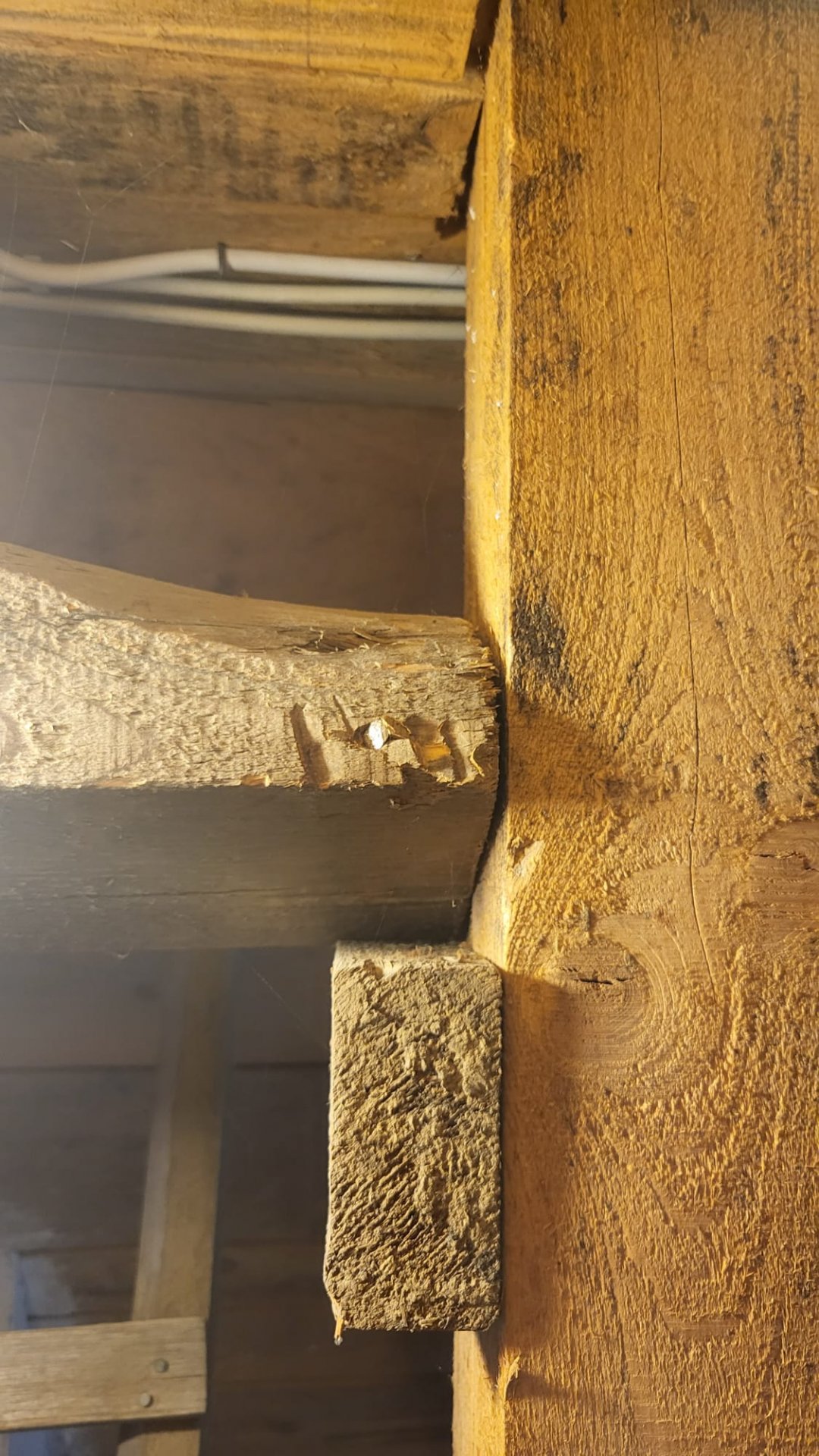 Diskutiere Schiefer Querbalken im Dachstuhl im Dach Forum im Bereich Neubau; Hallo Zusammen, Wir haben ein Haus geerbt und einen ziemlich schiefen Balken in der Dachkonstruktion entdeckt. Das Dach ist ca. 12 Meter lang....
