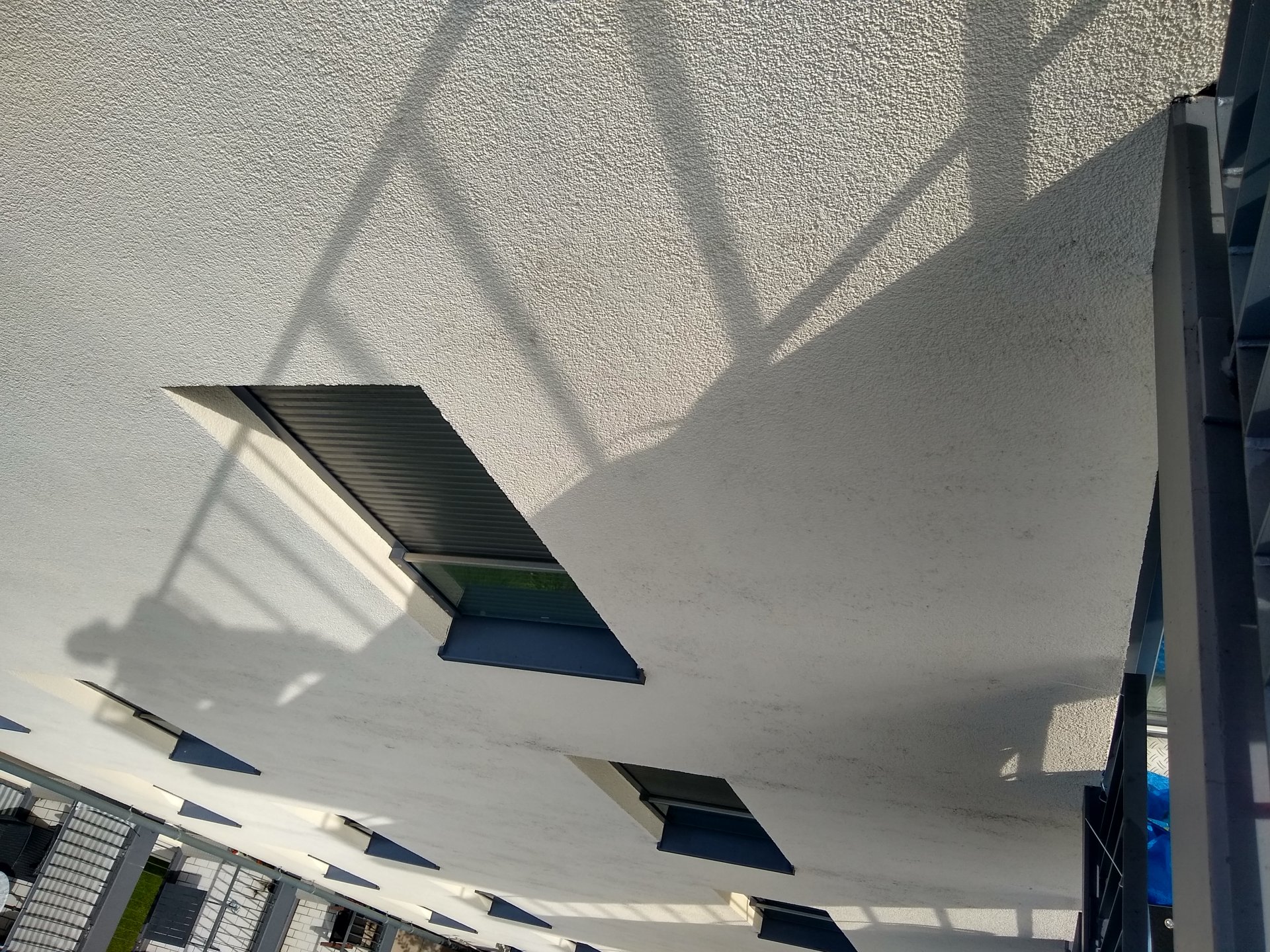 Flecken zw. Dachunterseite (außen) und Außenputz (EFH, 5J) – Schmutz, Algen, Schimmel?: Hallo zusammen, unser EFH ist jetzt fast 5 Jahre alt und ich lasse aktuell noch einige Restmängel vom Bauträger beseitigen. Außenseitig unter dem... -