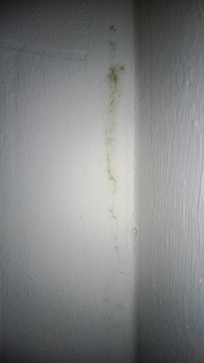 heute habe ich einen haarriss in einer wand des badezimmers entdeckt in dem sich scheinbar feuchtigkeit gesammelt hat und sich langsam schimmel entwickelt.siehe foto. es sieht in natura nicht so schlimm aus wie auf dem foto.