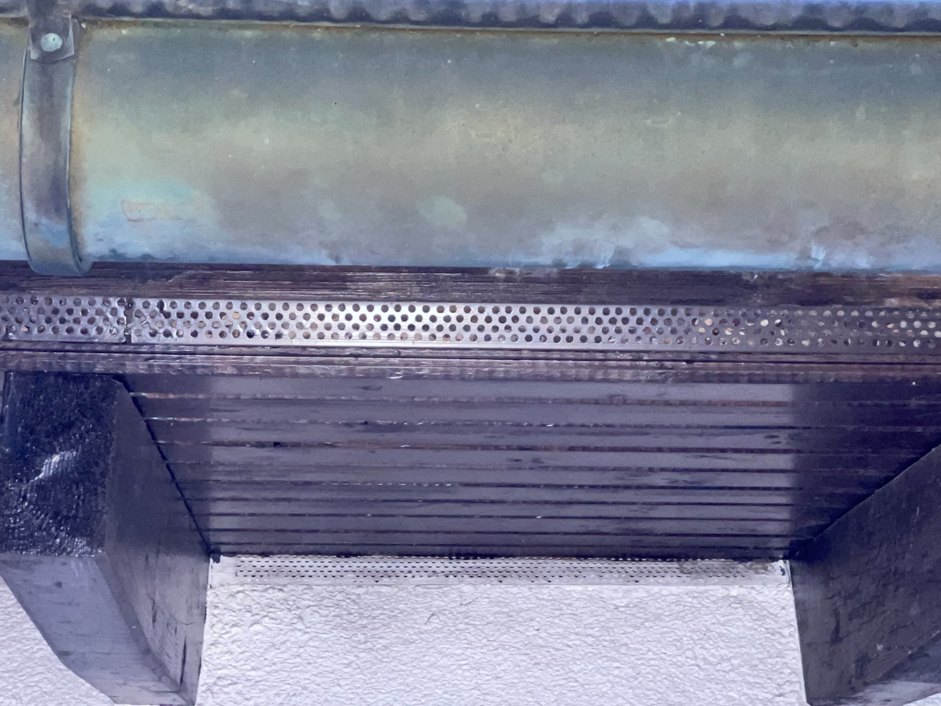 Zwecks Hinterlüftung hab ich mal zwei Bilder angehängt mit der Draufsicht von außen und auf die Traufe