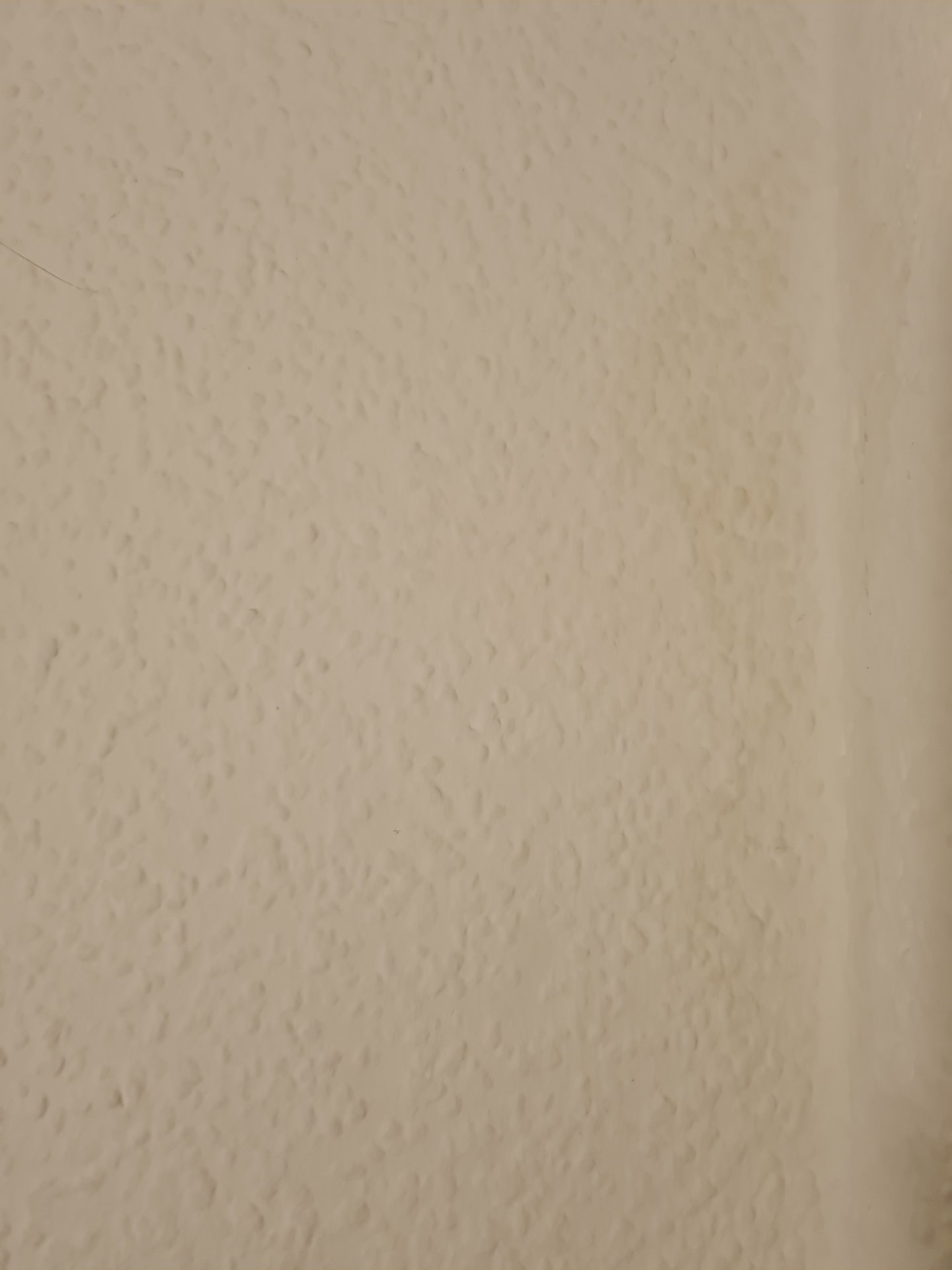 Es ist ein etwa 20 bis 25 cm länglicher *gelblicher* Fleck, der ein bisschen die Form eines Fußes hat. Auf der nebenliegenden Wandseite ist übrigens nichts zu finden.